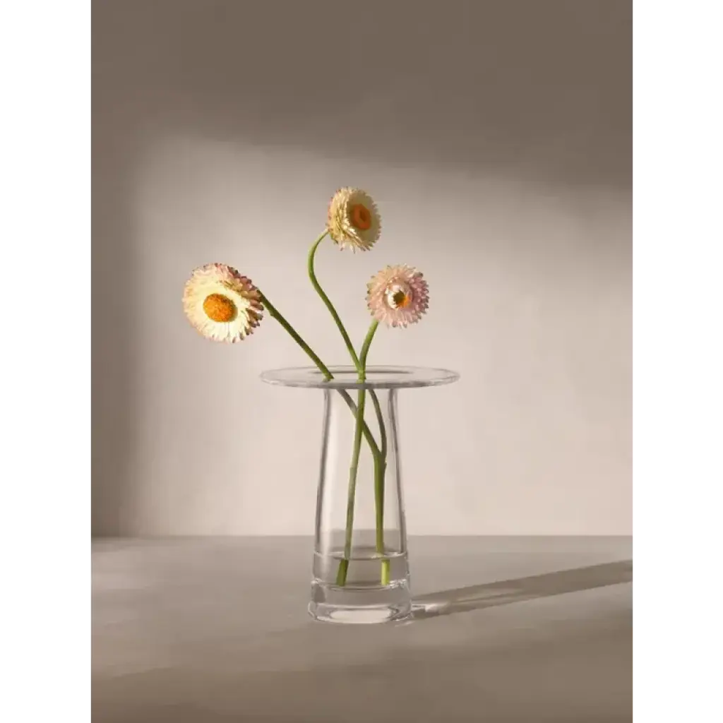 Inspired by the conical metal buckets often found in flower markets where Victoria sourced flowers for collaborative projects with LSA. Tapered mouth-blown forms feature a wide, flat collar that accentuates flowers, creating the illusion of them growing from the vase as they would from the ground. A versatile and contemporary design in tribute to Victoria's creativity and partnership with LSA. For each Victoria vase sold, LSA will donate to Sarcoma UK in her memory.