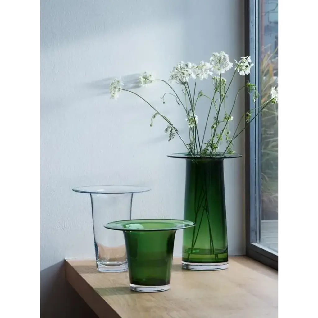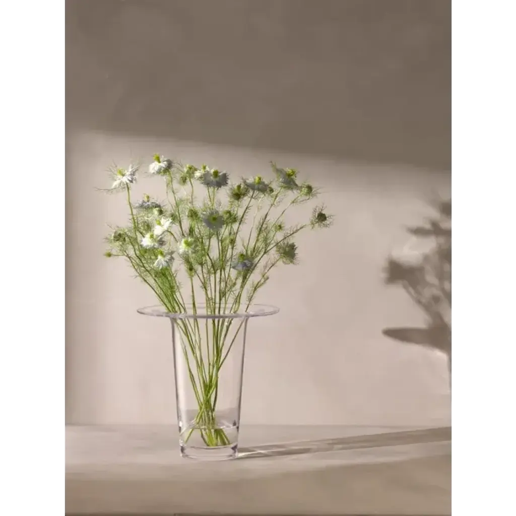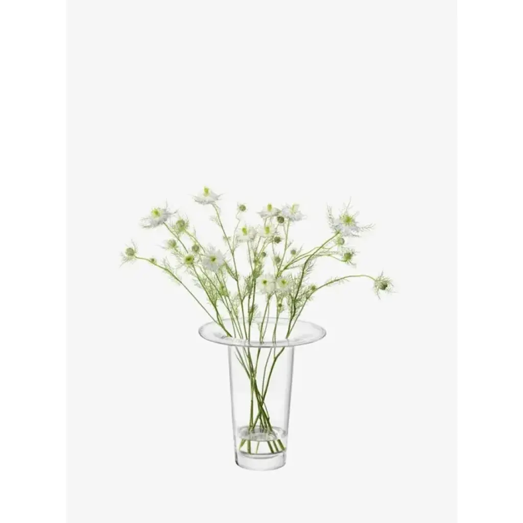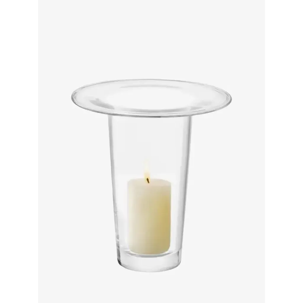 A mouth-blown vase/lantern with thick walls that fold outwards at the top into a wide and flat brim. Designed for seasonal displays, or a candle can be burned within. A versatile and contemporary design in tribute to Victoria's creativity and partnership with LSA. For each Victoria vase sold, LSA will donate to Sarcoma UK in her memory.