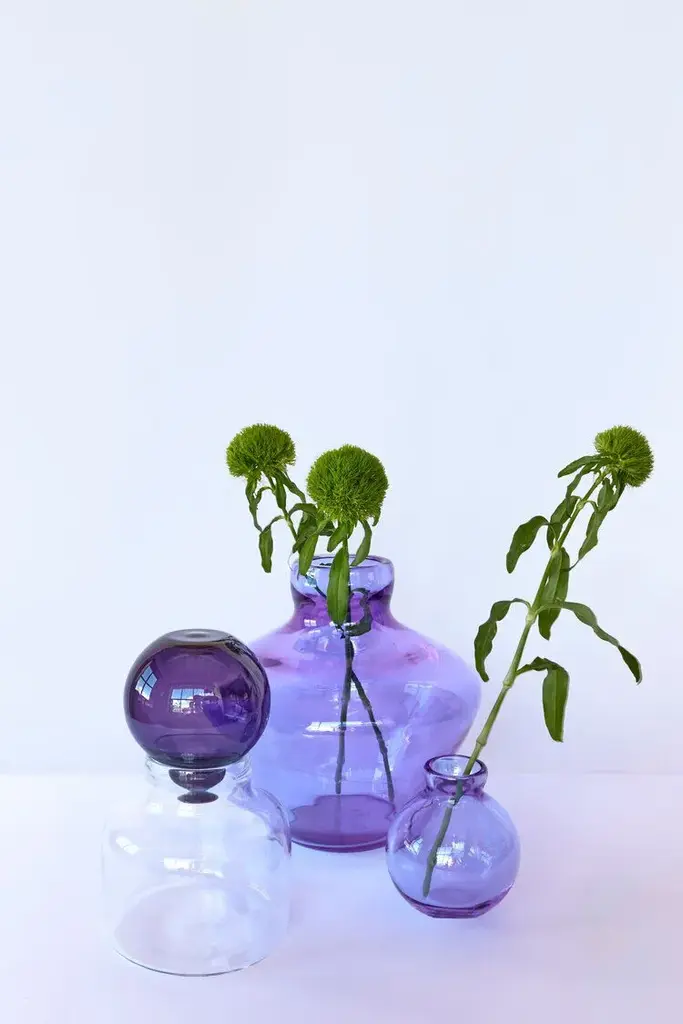 VIETRI is a blown glass vase.It is a combination of two vases, that can serve both as a sculpural crystal piece and a flower vase. The rounded top, thanks to its slightly flat top, becomes a vase itself, in order to create the perfect flower ensemble. A crystal piece artfully created with the traditional hand - blowing technique. The pureness of the crystal reflects the light illuminating the interior which is placed in. Variations in color or in small details are the result of the craftsmanship of this article and make each piece unique.Featureshand-blown and shaped in Italycolor: light purplematerial: pure lead crystal glass