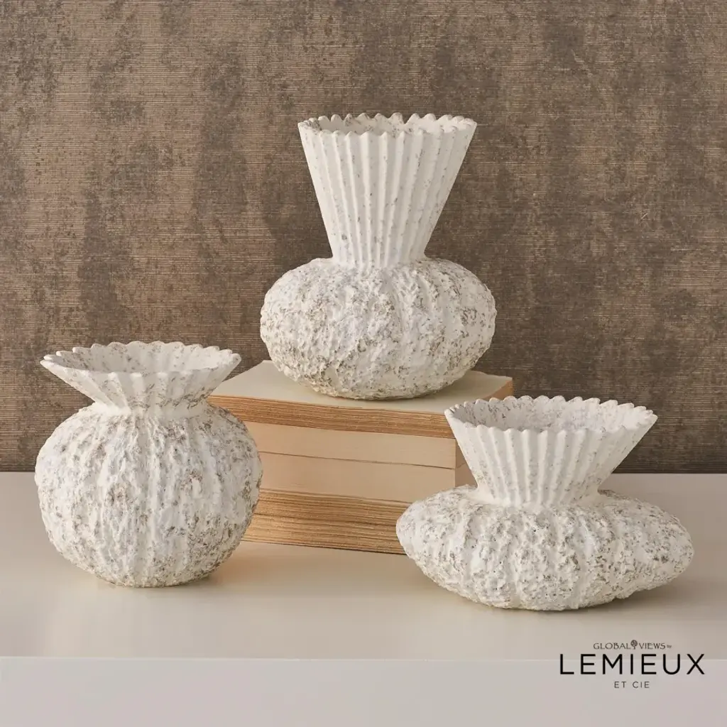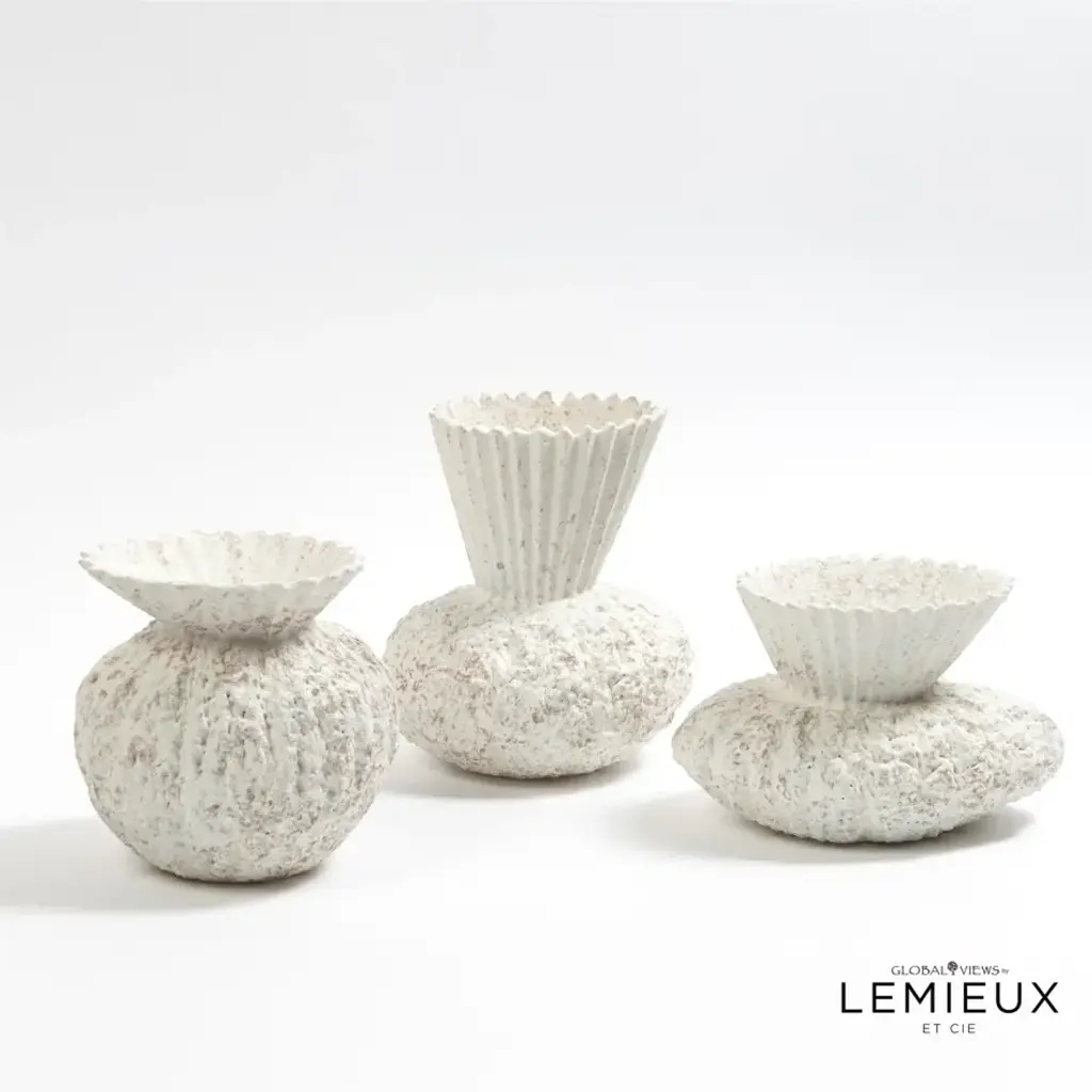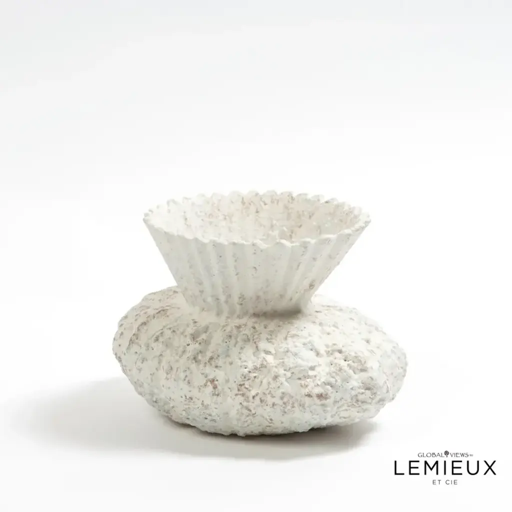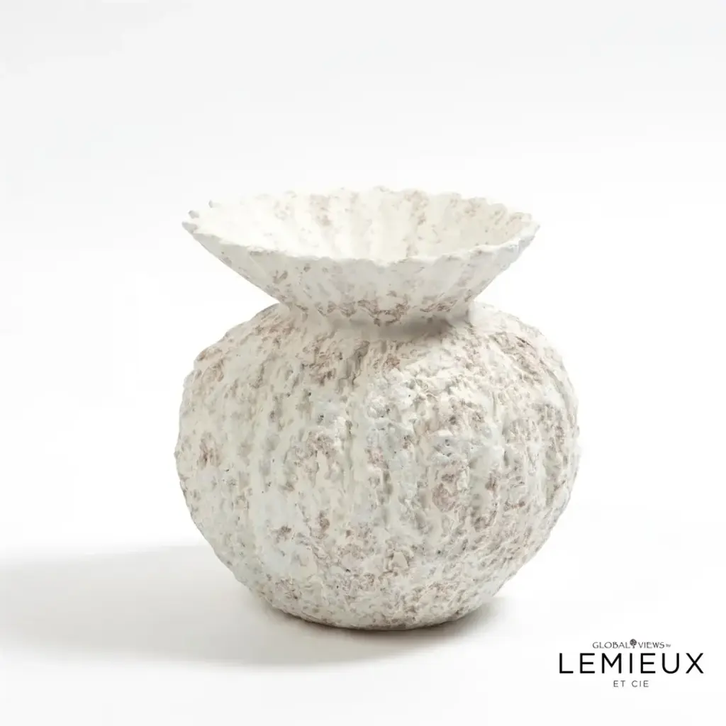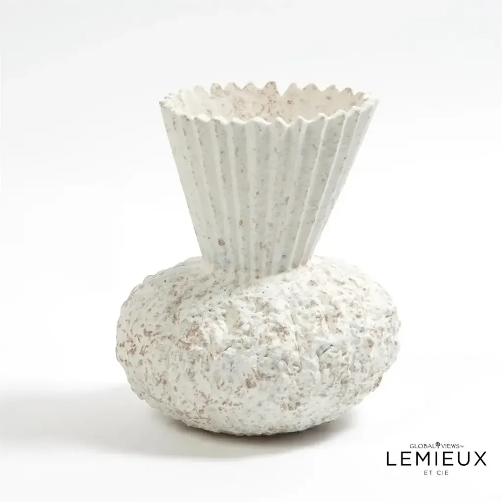 Like an ancient artifact dug up from the earth, the Vilette vase references archeology, ancient treasure, and the patina of time. This beautiful textured vessel is perfect for florals, greens, or alone. It works as a single standalone statement piece or in a curated collection. From a fashion forward perspective, Global Views offers accessories, furniture, statement lighting, and an assortment of rugs and mirrors to add beauty and joy to your home.