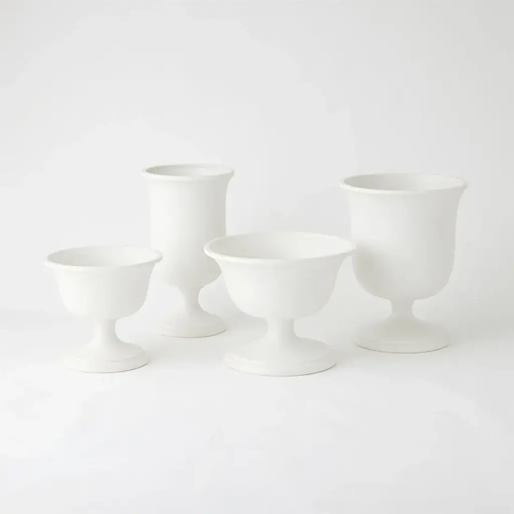 The Villa Chalice Vases are a true embodiment of Italian craftsmanship. Artisans employ the age-old technique of hand-packing clay into molds through a process known as Calco. Each mold is left to dry for 2-3 days, during which the clay naturally shrinks, making it easy to remove the mold. Following this, the vases undergo firing in a kiln at 950 degrees, and a second firing ensues, adding a white glaze finish. The result is a collection of vases that beautifully blend tradition and elegance. From a fashion forward perspective, Global Views offers accessories, furniture, statement lighting, and an assortment of rugs and mirrors to add beauty and joy to your home.