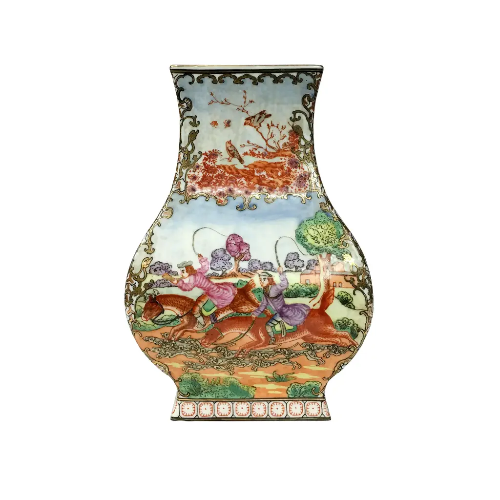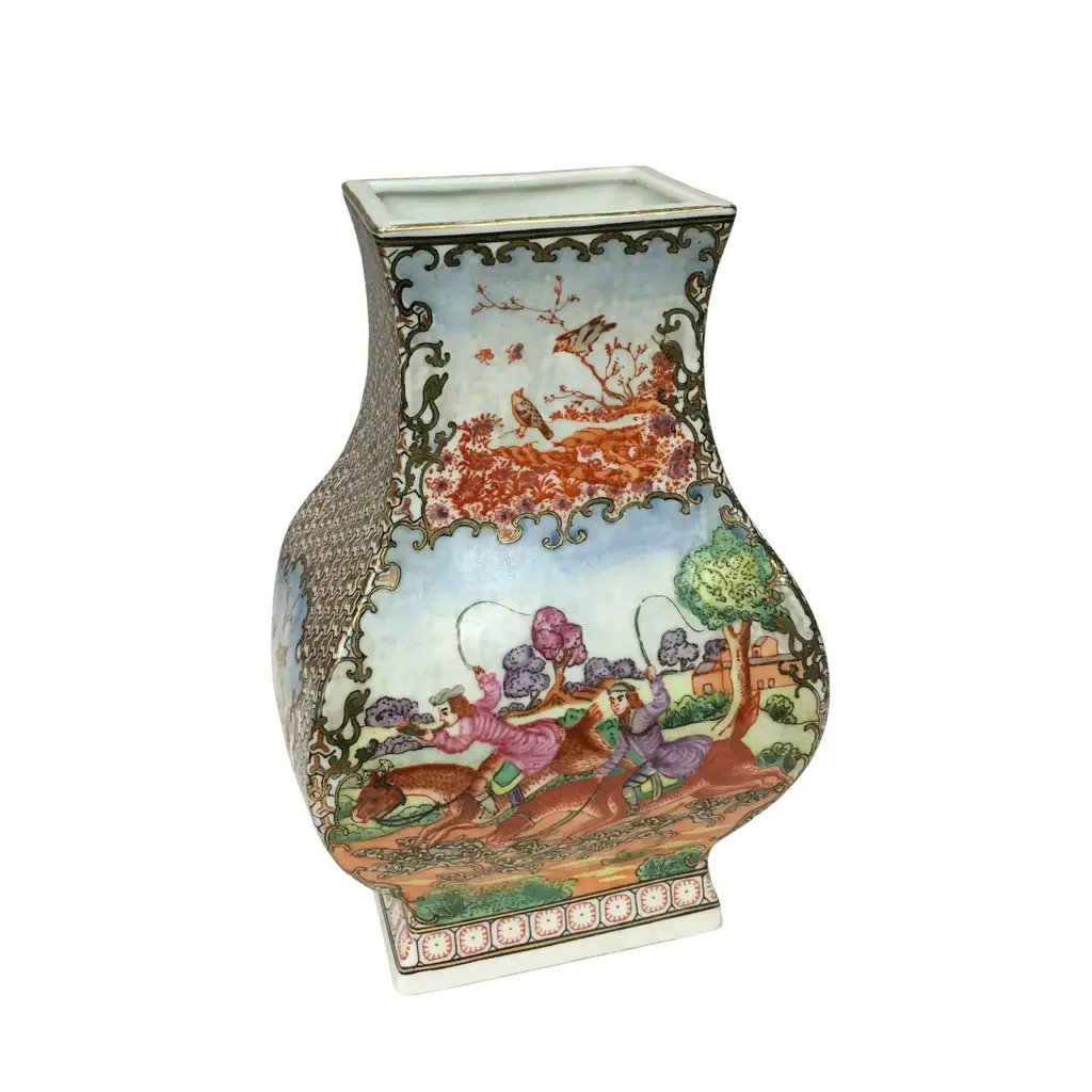 Vintage Chinese Export English Hunt Scene Vase