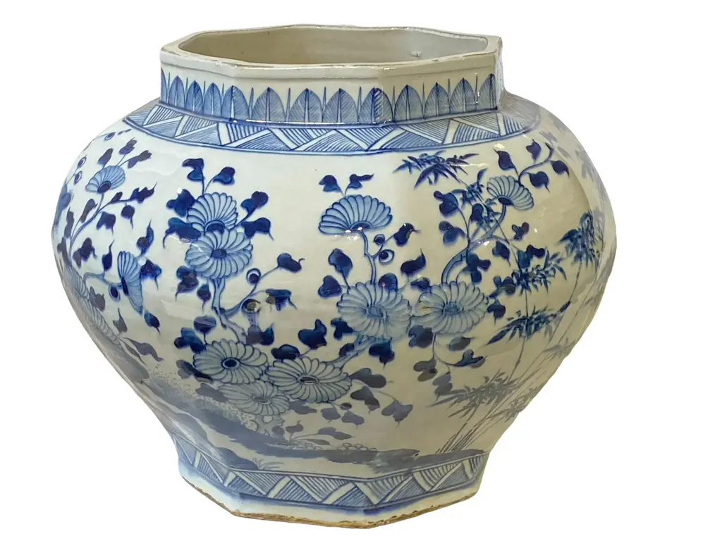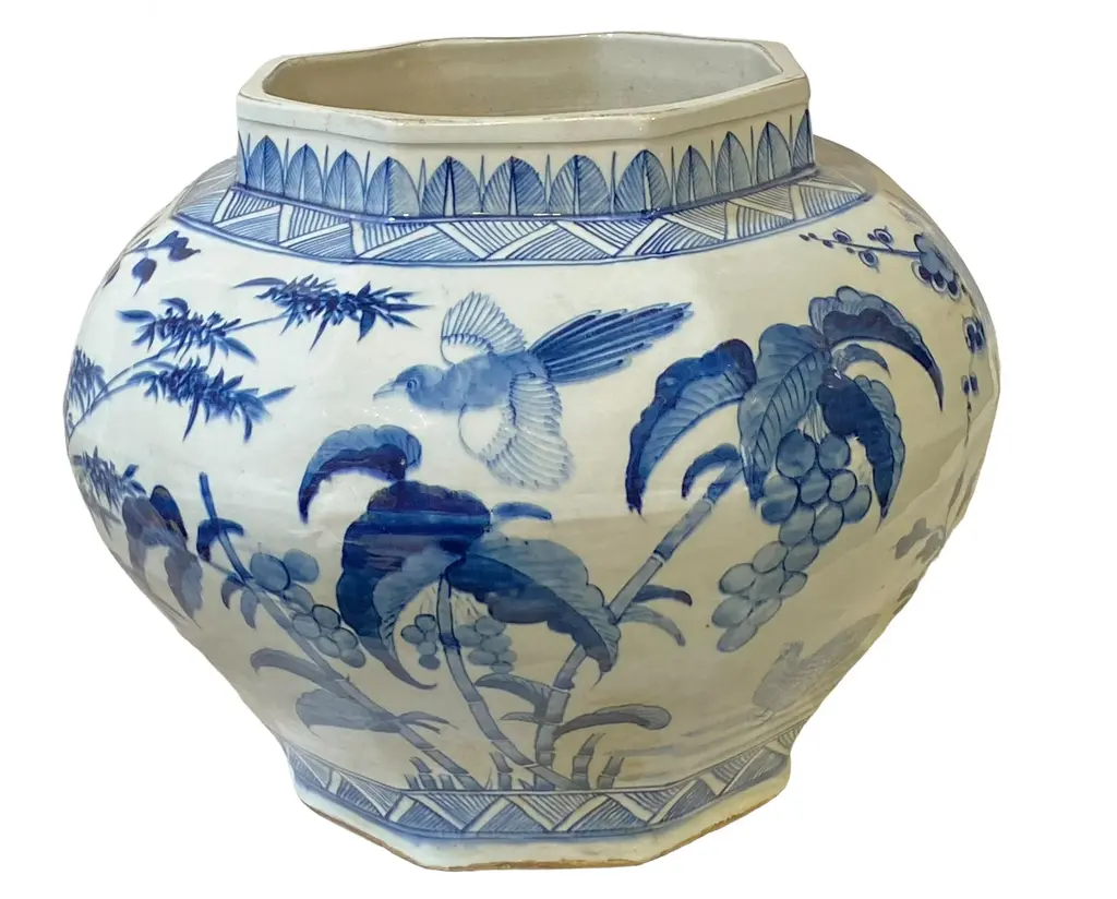 Vintage Ming Style Chinoiserie Blue And White Vase./cachepot 11" H