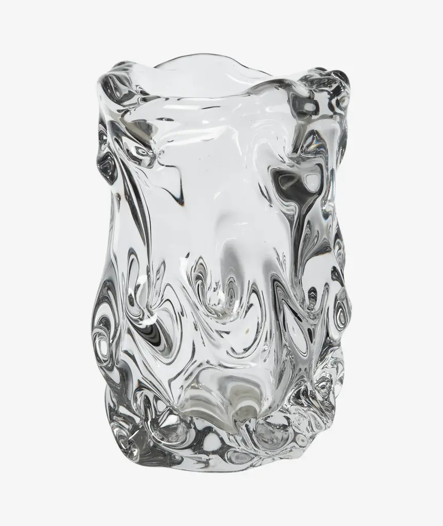 The Virelle Vase is crafted from mouth-blown glass with a form that captures gentle motion. Its rippling silhouette evokes the feeling of swells and vibrations, bringing a fluid, sculptural presence to the room. A considered piece that adds a quiet sense of movement to your space.
