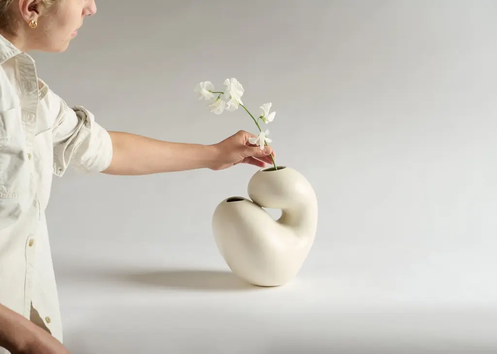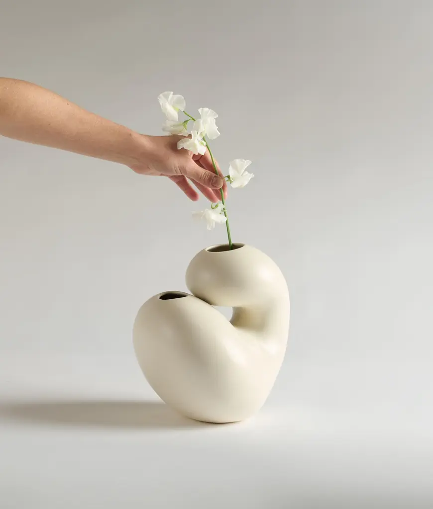 Vita Vessel by Dust and FormDimensions: W 20.3 x D 20.3 x 23 H cmMaterials: Plaster, finished in a Matte Charcoal glaze both inside and out. This vessel is watertight and functional for fresh or dried arrangements.- a form to evoke joy and life -The Vita Vessel embodies movement. Like a playful dancer, this sculptural vase reminds us of the vibrancy of life and stretches beyond itself with any whimsical floral arrangement. “Vita” is Latin for life! The Origin Form Collection is a visual exploration of human essence. The pieces within this collection exhibit common and fundamental aspects of our shared humanness. They are intended to live gracefully in whatever space feels best and serve as a visual reminder to connect to our deeper, truer selves. Dust and form pieces are designed and produced by Brielle Rovito. Each object is handmade with great care.