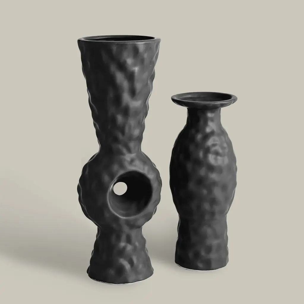Lemieux Et Cie's Volcanic Vases combine modern silhouettes with evidence of the hand and a gorgeous tactile volcanic finish. Available in 2 sizes/shapes that can be paired for a stunning moment. The organic sculptural form will elevate any tablescape. Large Vase available separately.