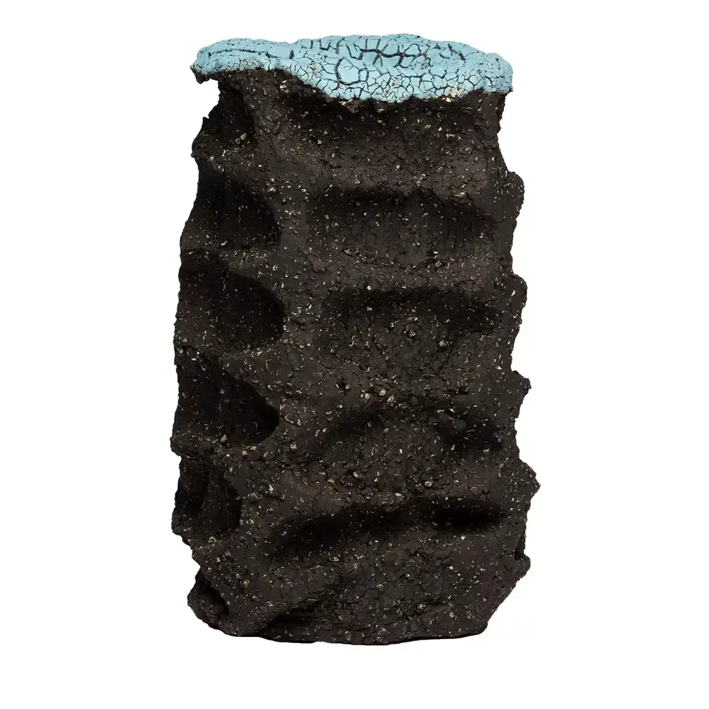 A reactive glazing technique creates an intriguing surface effect on our Vulca Mini Vase. Playing with proportion and texture, the stoneware piece tapers to a point, making it ideal for a single stem. Style it solo or group in clusters to create a unique floral or decorative arrangement.