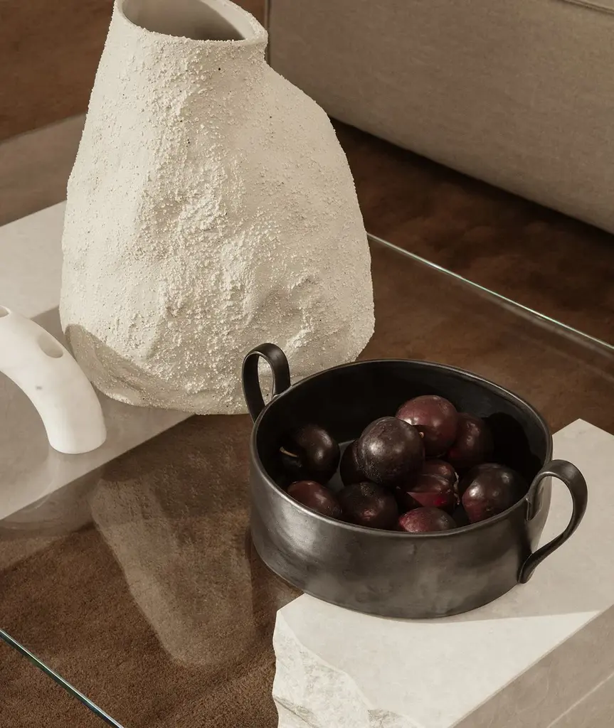 The Vulca Vase’s fluid form and textured surface recalls the harsh beauty of volcanic bedrock. Made from stoneware with an off-white stony glaze, the vase features distinctive, tiny grains that make each piece unique. Fill it with your favorite flora, or let the piece make a statement on its own.