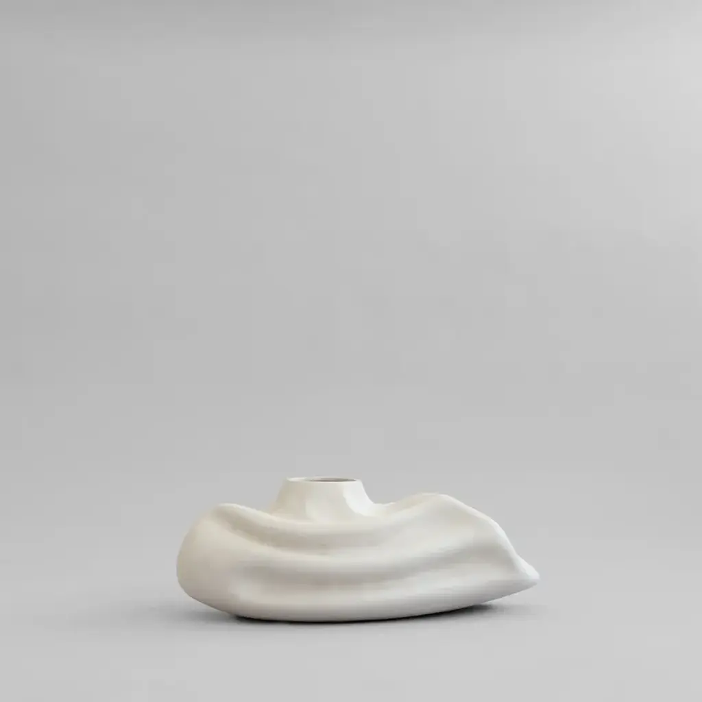 Wabi Vase Fat is a ceramic vase. Wabi is hand-glazed to achieve a unique matte surface texture. The colors may vary slightly, as it is a handmade product. Glazed on the inside with waterproof lacquer, Wabi is 100% waterproof and can be used for fresh flowers.