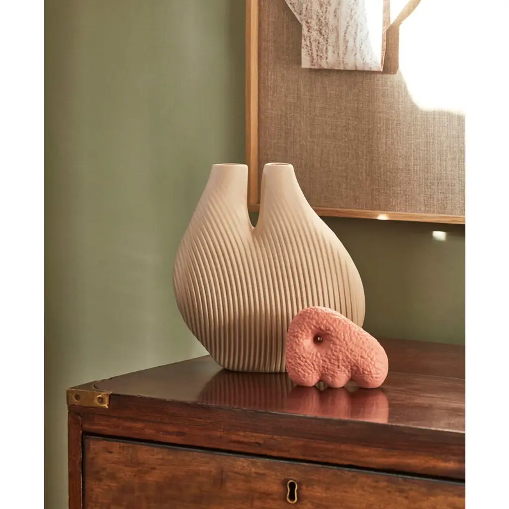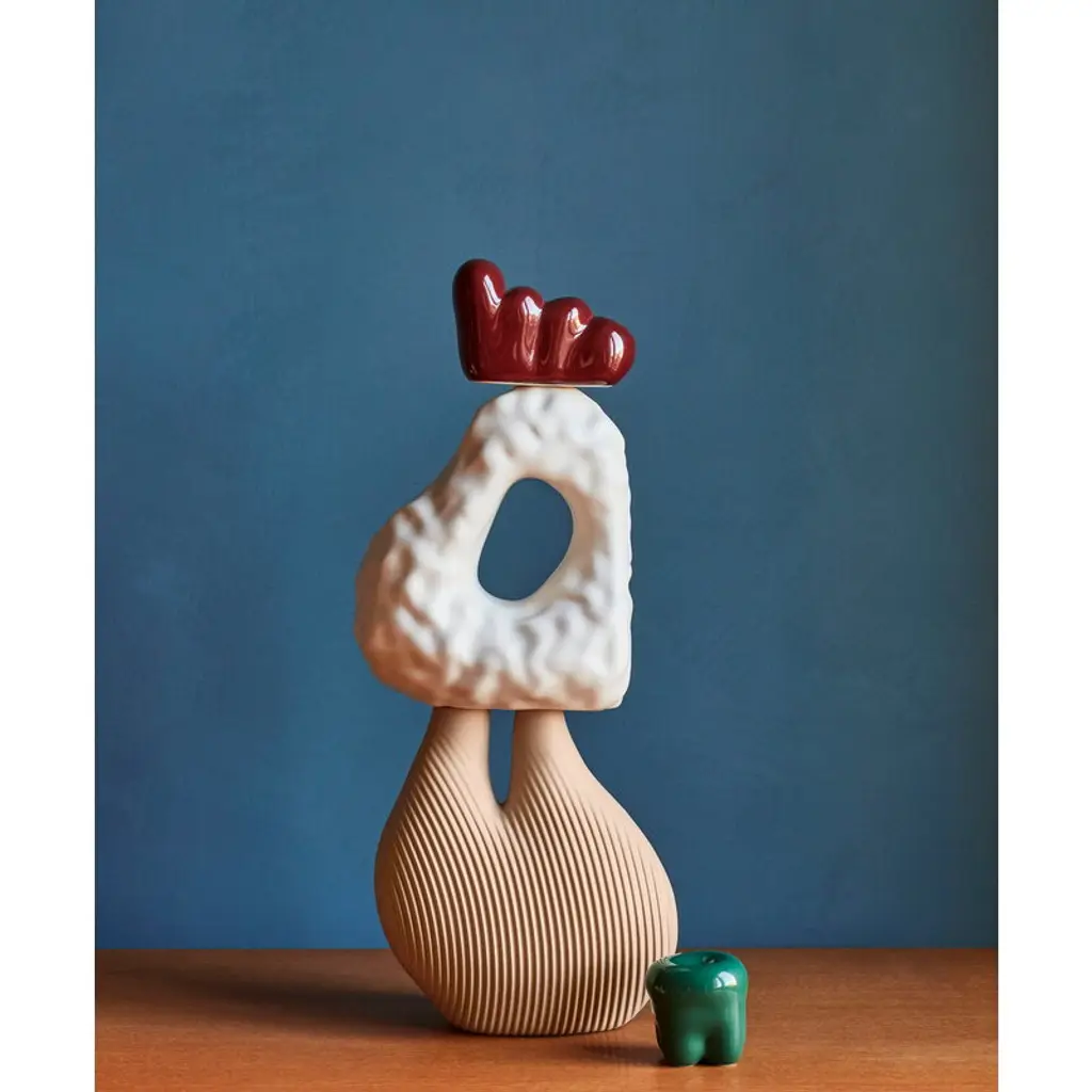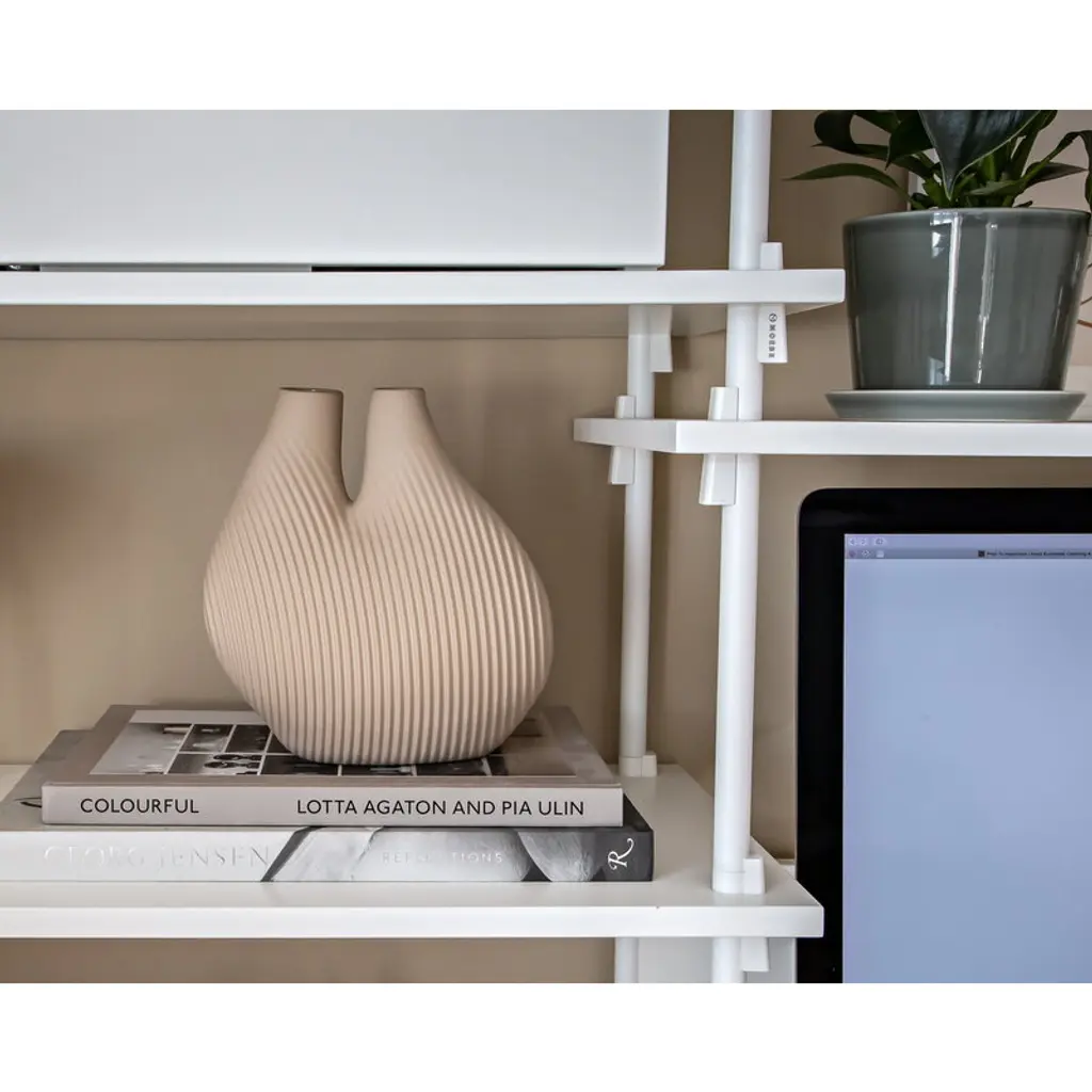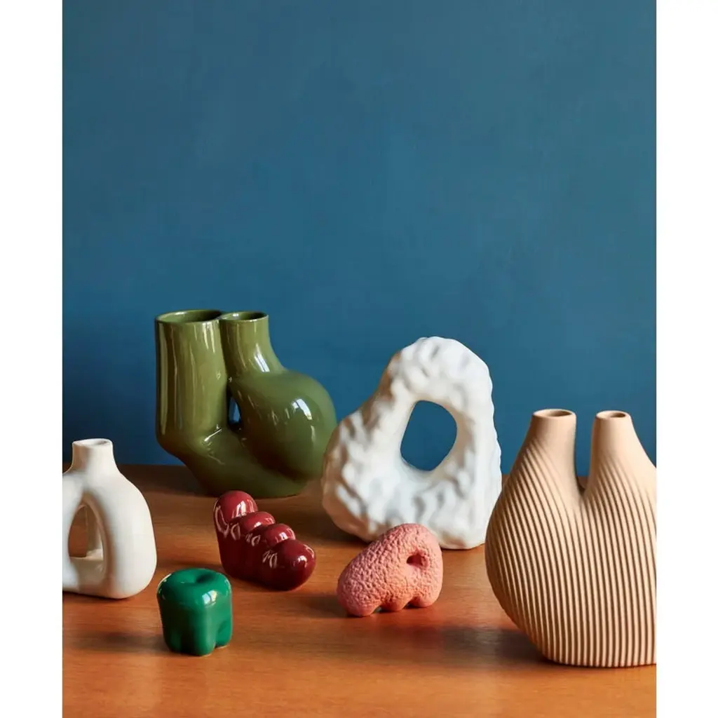 HAY’s W&S Chamber vase is part of the W&S collection by design duo Wang & Söderström, consisting of ceramic accessories and objects with distinctive, sculptural forms and fascinating textures. In the asymmetrical Chamber vase, the designers wanted to play with the contrast between the textured porcelain and the precise grooves adorning it. With the collection, Wang & Söderström aim to blur the lines between the digital and the physical. The objects have first been created digitally, then 3D printed and, lastly, molded in porcelain or stoneware. The shapes are intentionally curious: “We wanted to give the objects organic forms as if they’ve been part of a plant or animal but keep the alien unfamiliarity that comes from their digital roots. What makes them ordinary or what makes them strange depends on who is looking at them,” the designers have said.