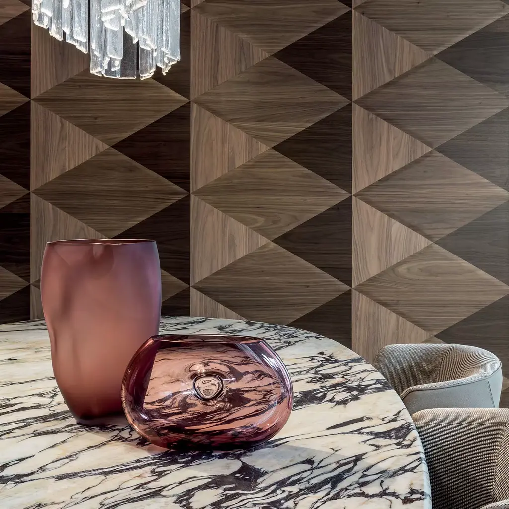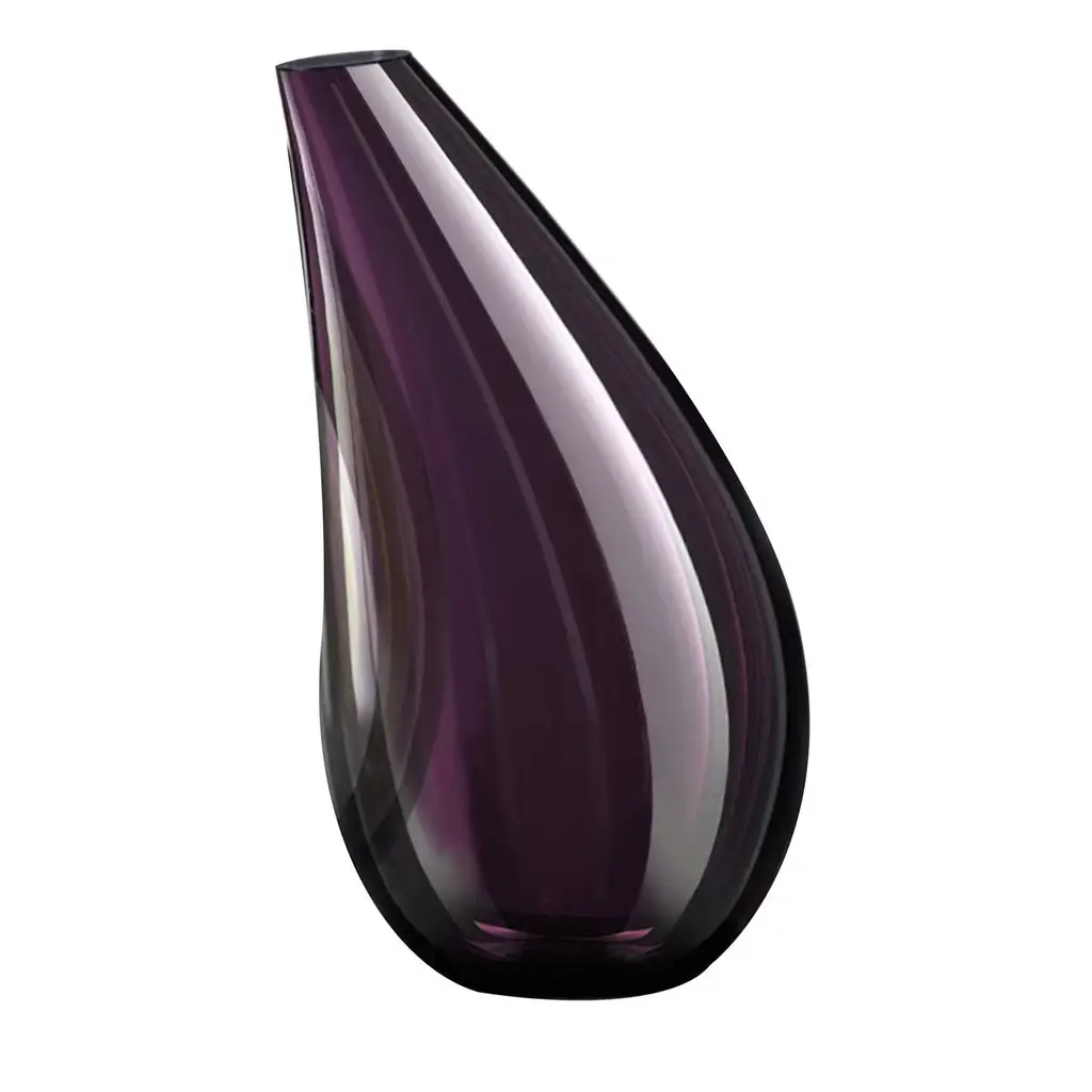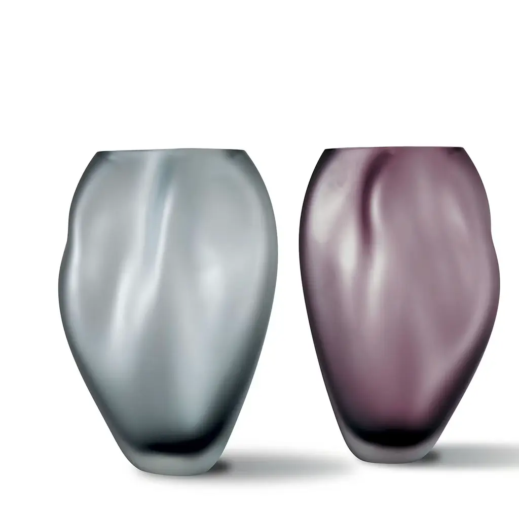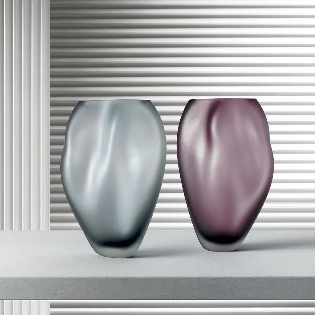 Inspired by water slightly rippled by the breeze, this amethyst-toned vase is a singular precious piece minutely mouth-blown by master craftsmen. Its distinctive, ethereal shape is obtained by heating the body up to almost losing control, an engaging process further speaking to its exclusivity. Perfected by an elegant satin finish, it also comes in a gray variant.