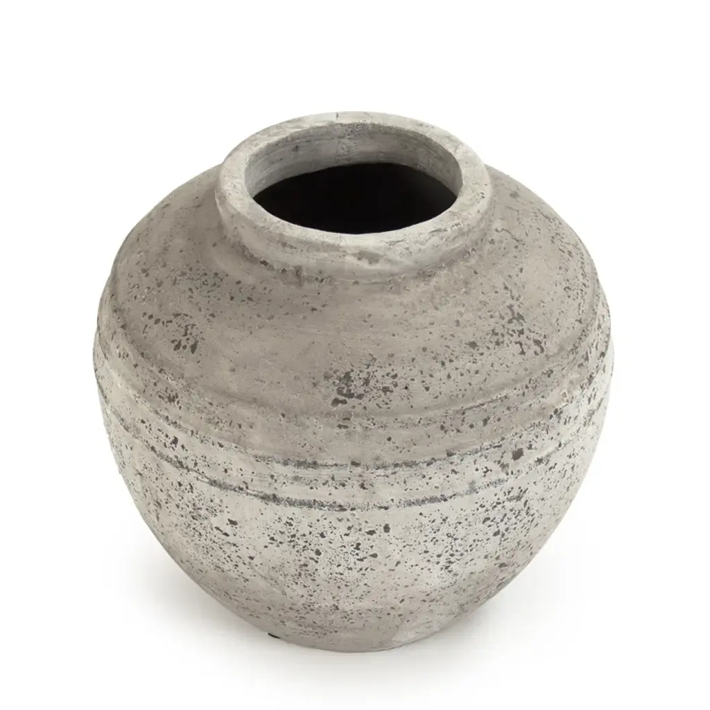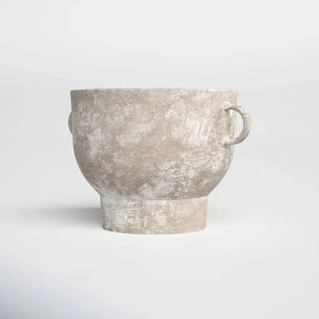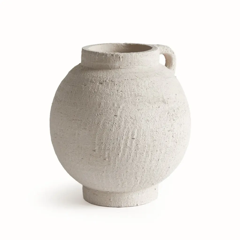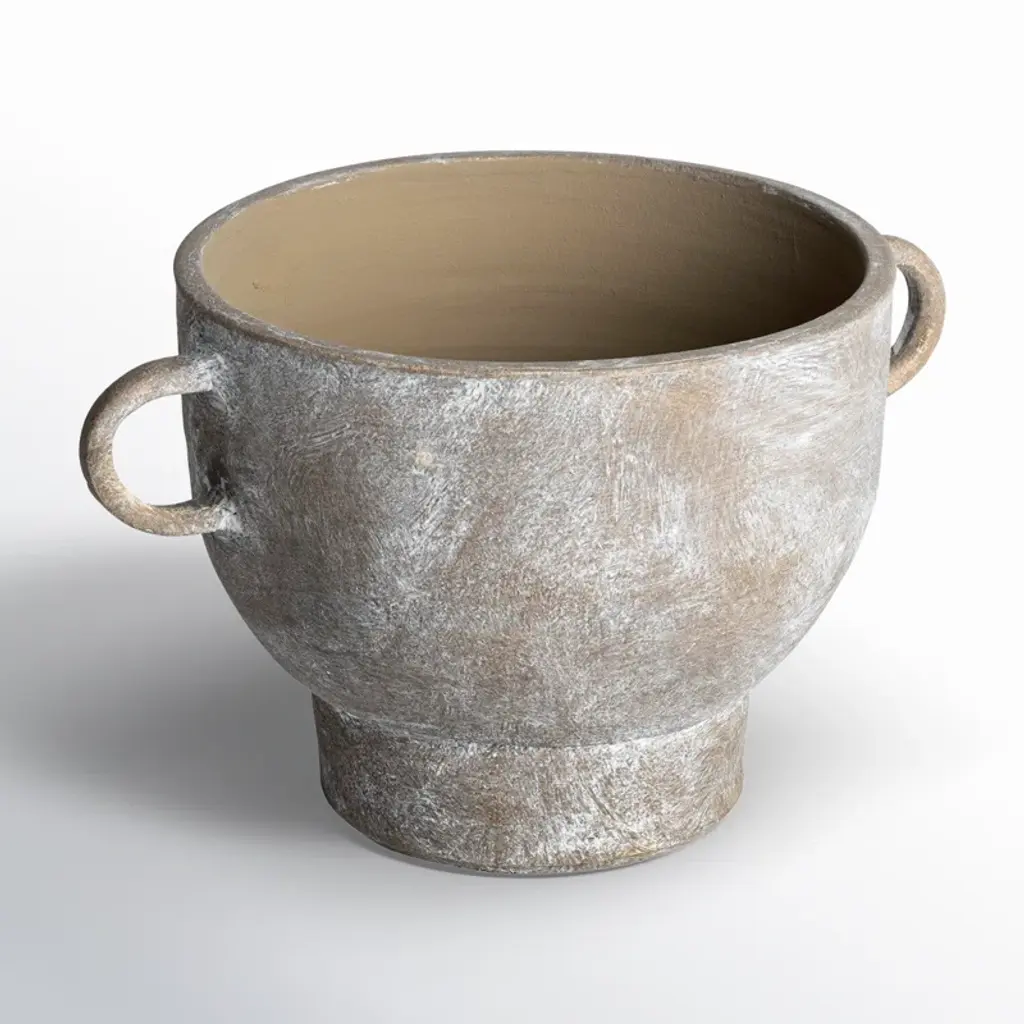 Handcrafted from ceramic and finished in a gray/beige tone, this is a stylish stout vase with two C-shaped handles that add to its visuals.