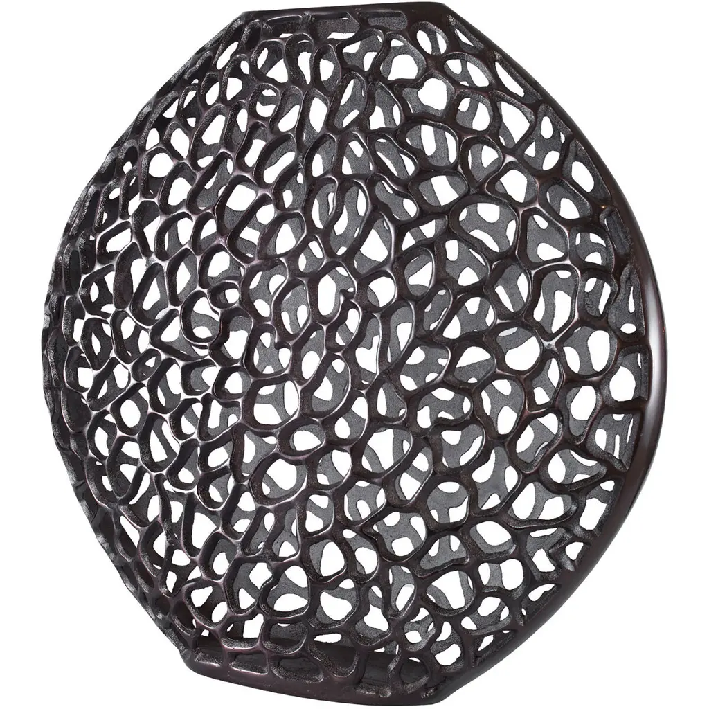 Crafted From Cast Aluminum, This Vase Showcases An Intricate Open Frame Design Finished In Dark Bronze.