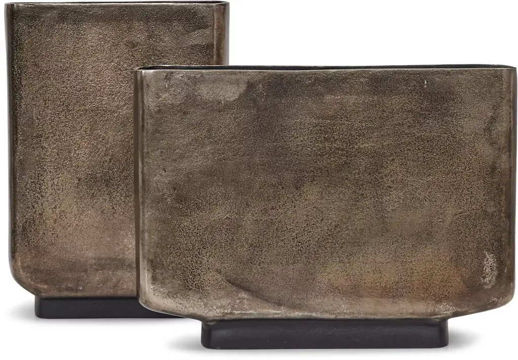 Embrace the allure of our Wellington vase, a masterpiece of craftsmanship with its unique bronze and copper chemical reaction finish. Each vase is a unique creation, hand-forged from the finest aluminum. This piece is available in two sizes. The small version rises to 13 inches, perfect for intimate spaces, while the large vase extends to 16 inches, making a statement in any setting. Please select your size before adding to cart.