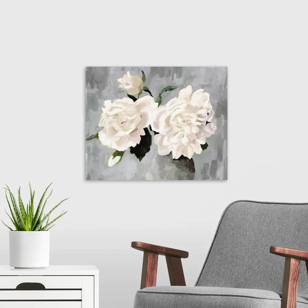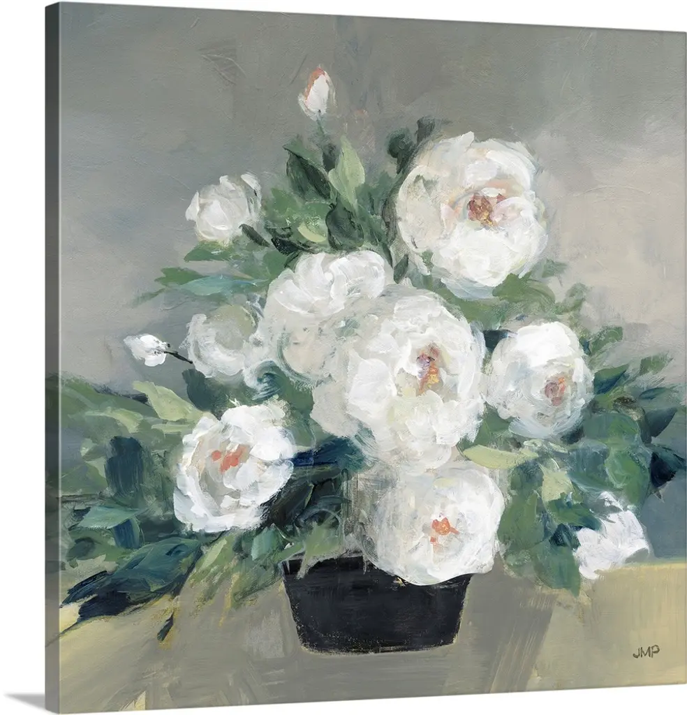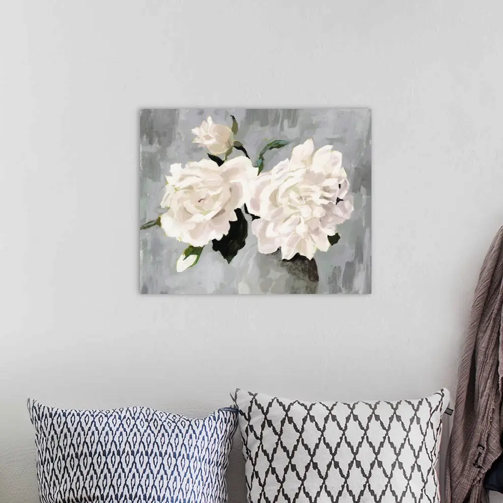 White Blooms In Gray Vase I wall art for home and office decor. Discover canvas art prints, photos, mural, big canvas art and framed wall art in GreatBigCanvas.com's varied collections.