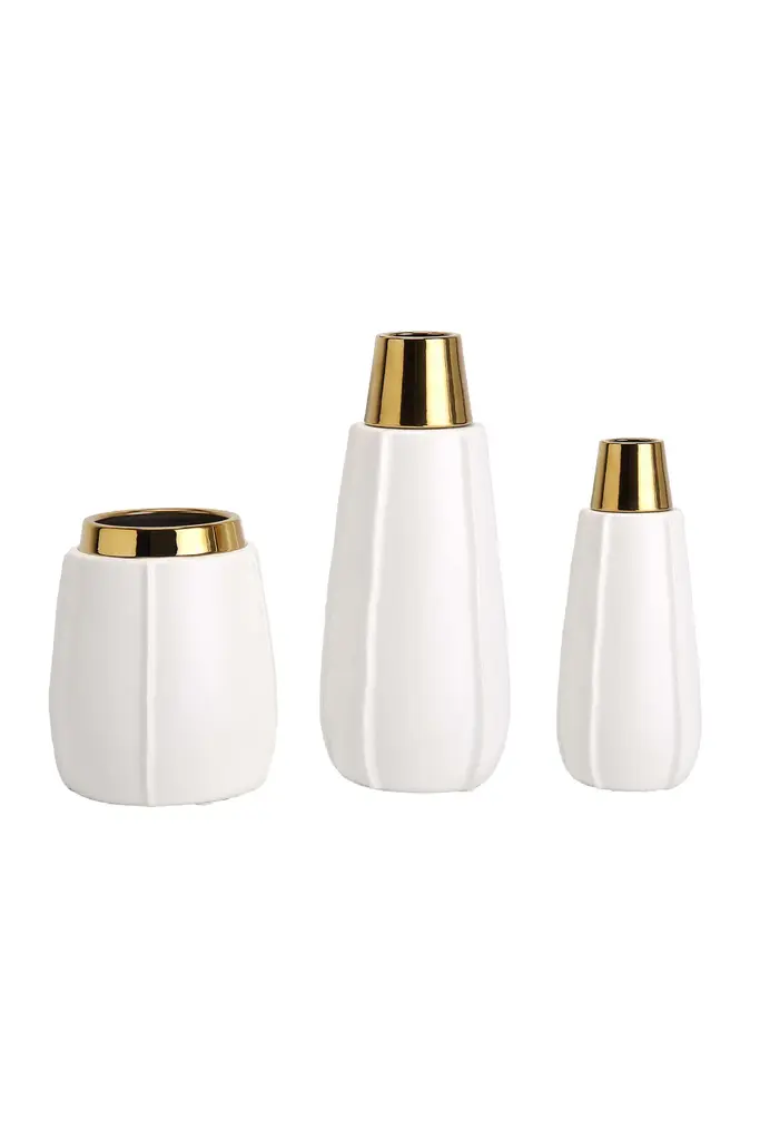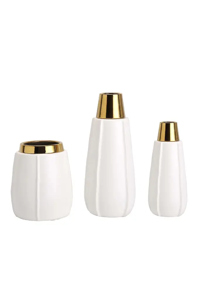 Add a touch of elegance to your interior with this simplistic ceramic vase complete with polished gold detail.