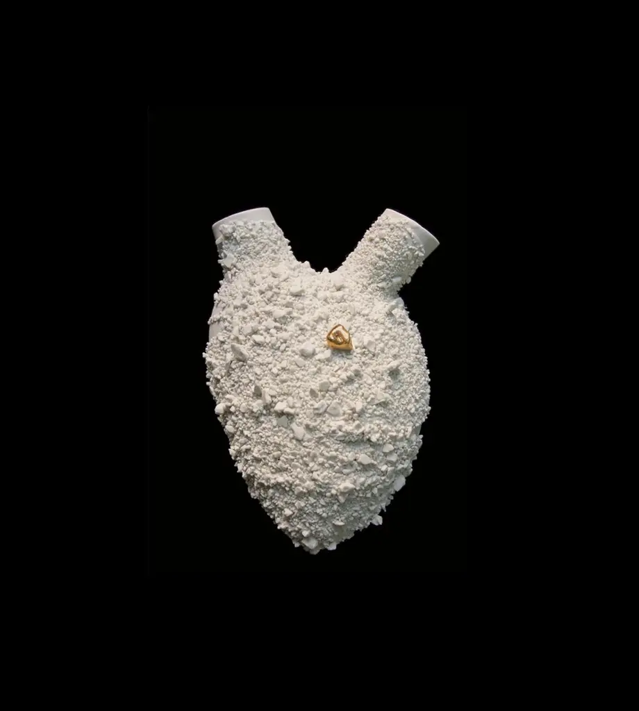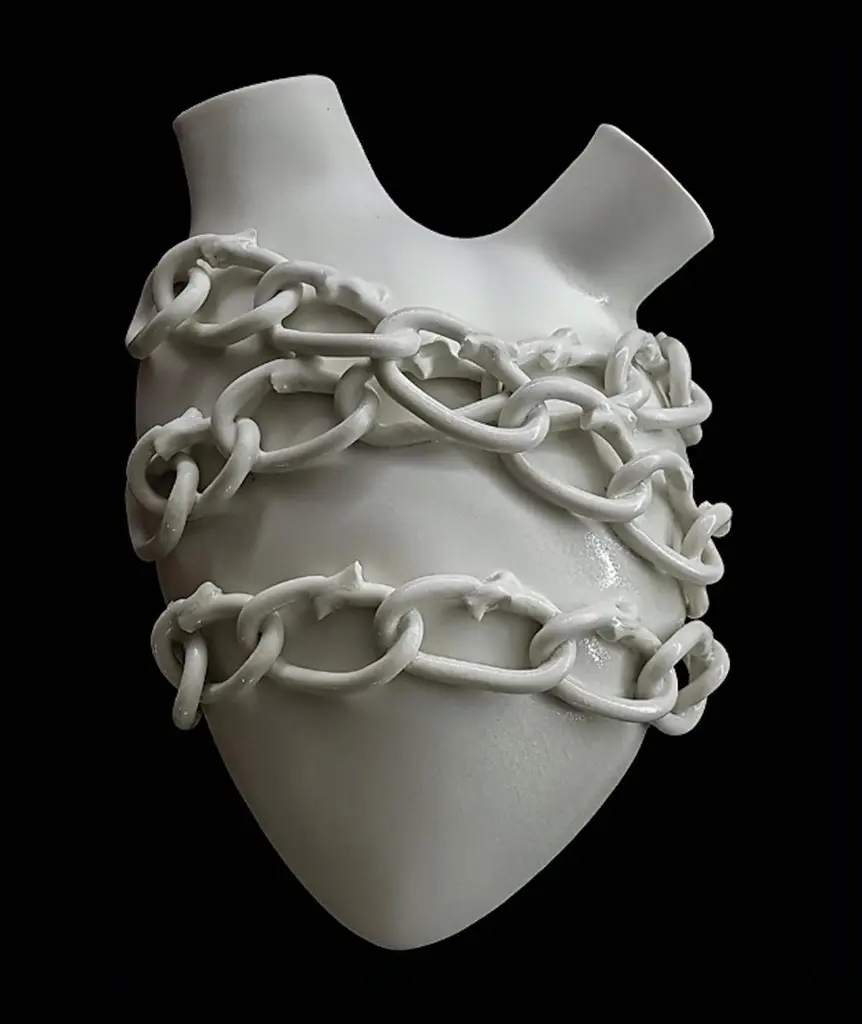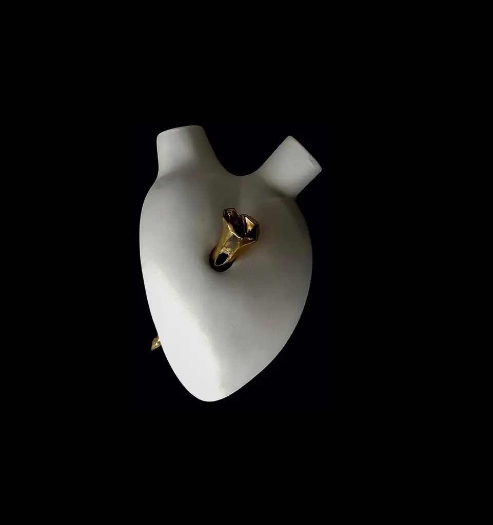 The heart collection is the result of the extravagant creativity of two innovative designers, who are inspired especially by the human body.This collection is made by 4 beautiful pieces all handmade in Italy. The hearts take up the symbolism of love, nature, human body and our feelings. Sometimes love can hurts, but it will always be the driving force of our lives. These Biscuit porcelain Hearts are not only sculptures, each one is a vase that you can hang on the wall and fullfill with fresh flowers or ornamental flowers.This collection is entirely handmade. The material used is porcelain, of Limoges (France) and German origin, fired at 1260 C. The shape of heart is made by casting in plaster moulds. The sculptures (thorns, coral, birds,..) are added to the heart immediately after finishing. The object is first fired at 980 C and then painted using metal oxides. Then glass is applied to the parts that need to be polished. After a second cooking, the piece is finished.The whole process is strictly handmade so small imperfections in shape and color and differences in gloss are due to the manual processing.