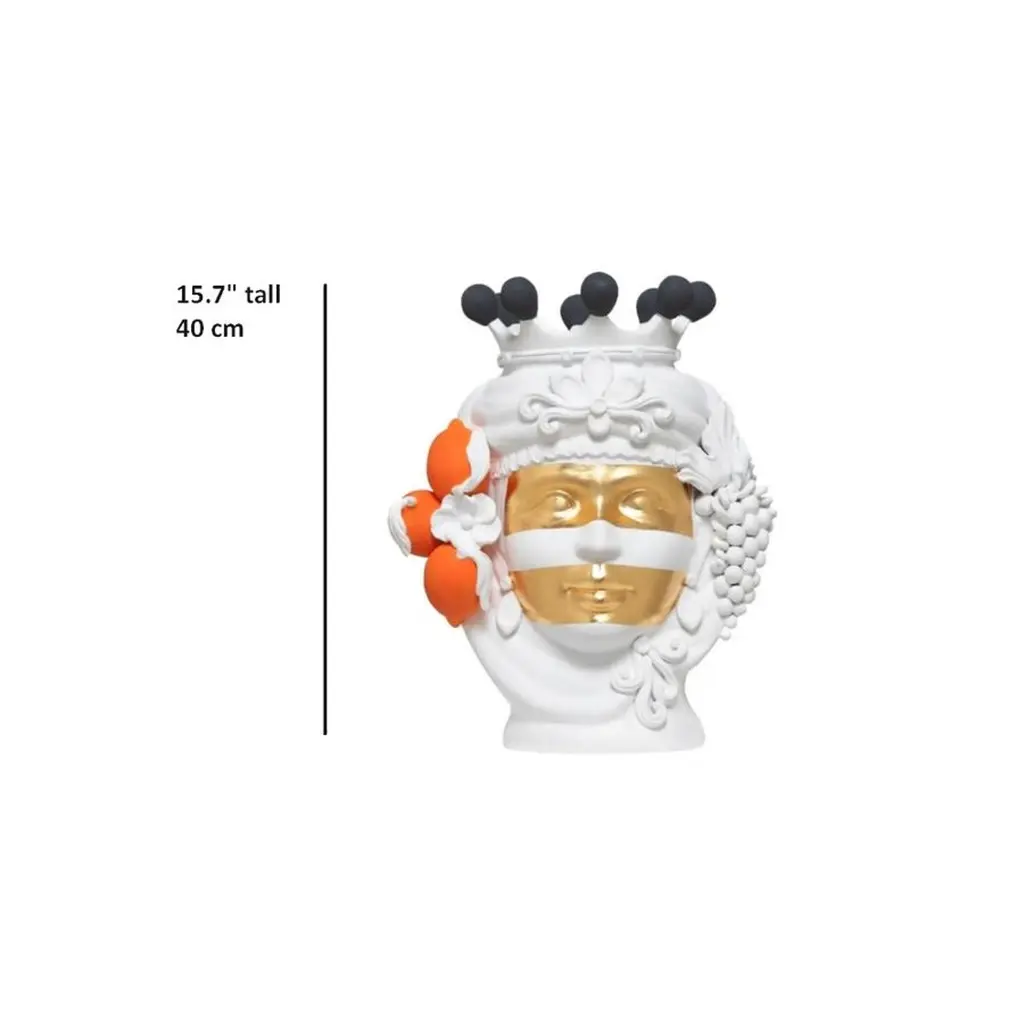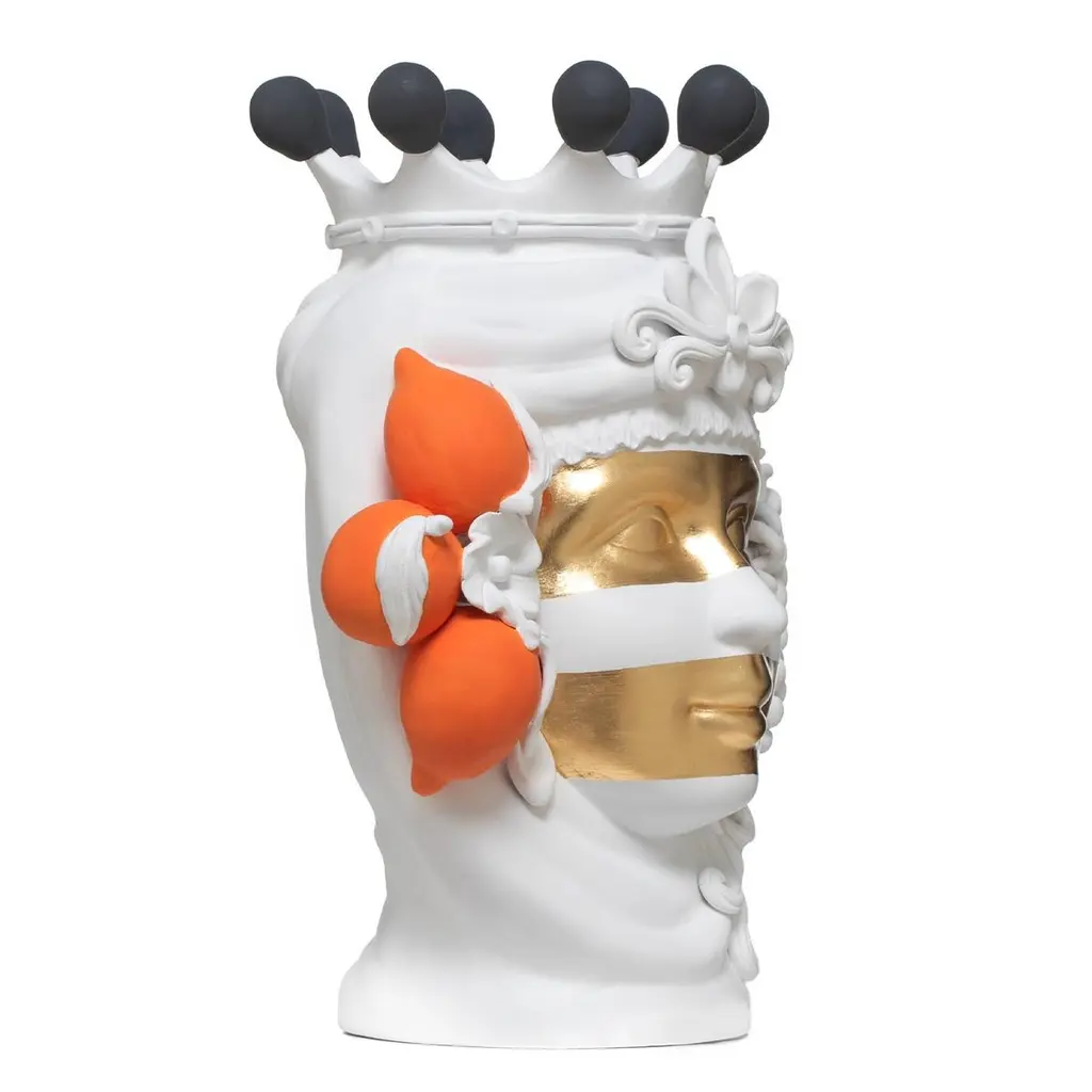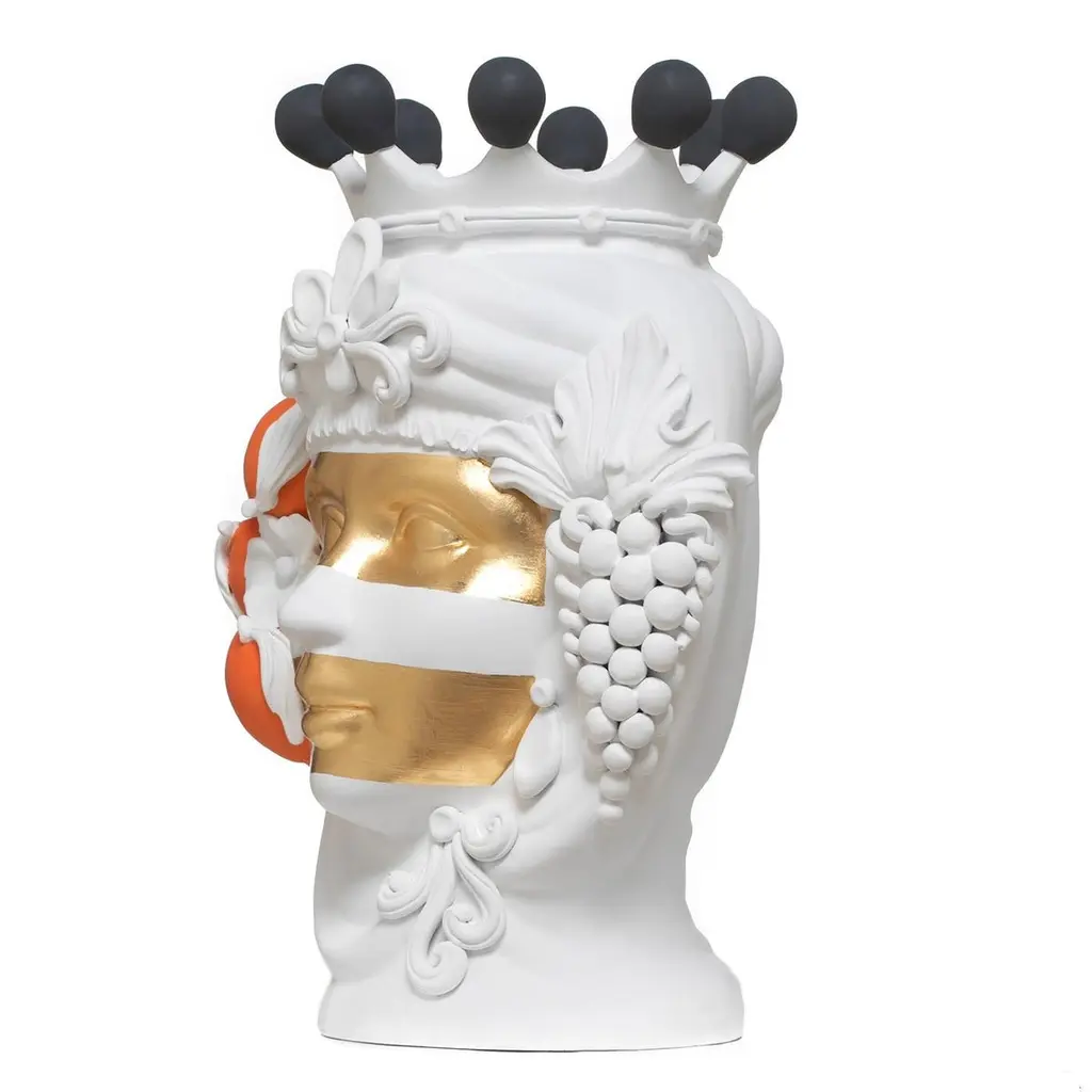 Scroll down and click "view all from Seller" to see more than 400 similar products. (2)This mythology inspired vase has been crafted entirely by hand in terracotta, painted with a matte white finish and decorated with orange and black detail with two bands in gold leaf featured across the face of the ancient deity.Designed by Stefania BoemiMade in Italy:Made in Italy furniture means design, quality, style and sophistication.The typical elegance of Italian design can be found in this piece. No wonder that the world famous designers like Philippe Starck, Karim Rashid, Piero Lissoni, Rodolfo Dordoni and many others put their signature next to Made in Italy.