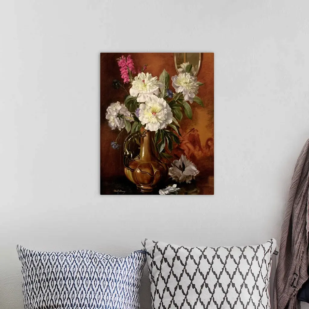 White Peonies in a Glazed Victorian Vase wall art for home and office decor. Discover canvas art prints, photos, mural, big canvas art and framed wall art in GreatBigCanvas.com's varied collections.
