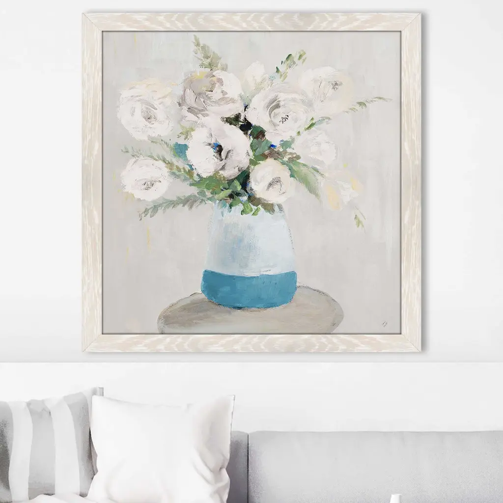 "White Peonies In Tonal Vase" Print On Acrylic. - 37.5 X 37.5