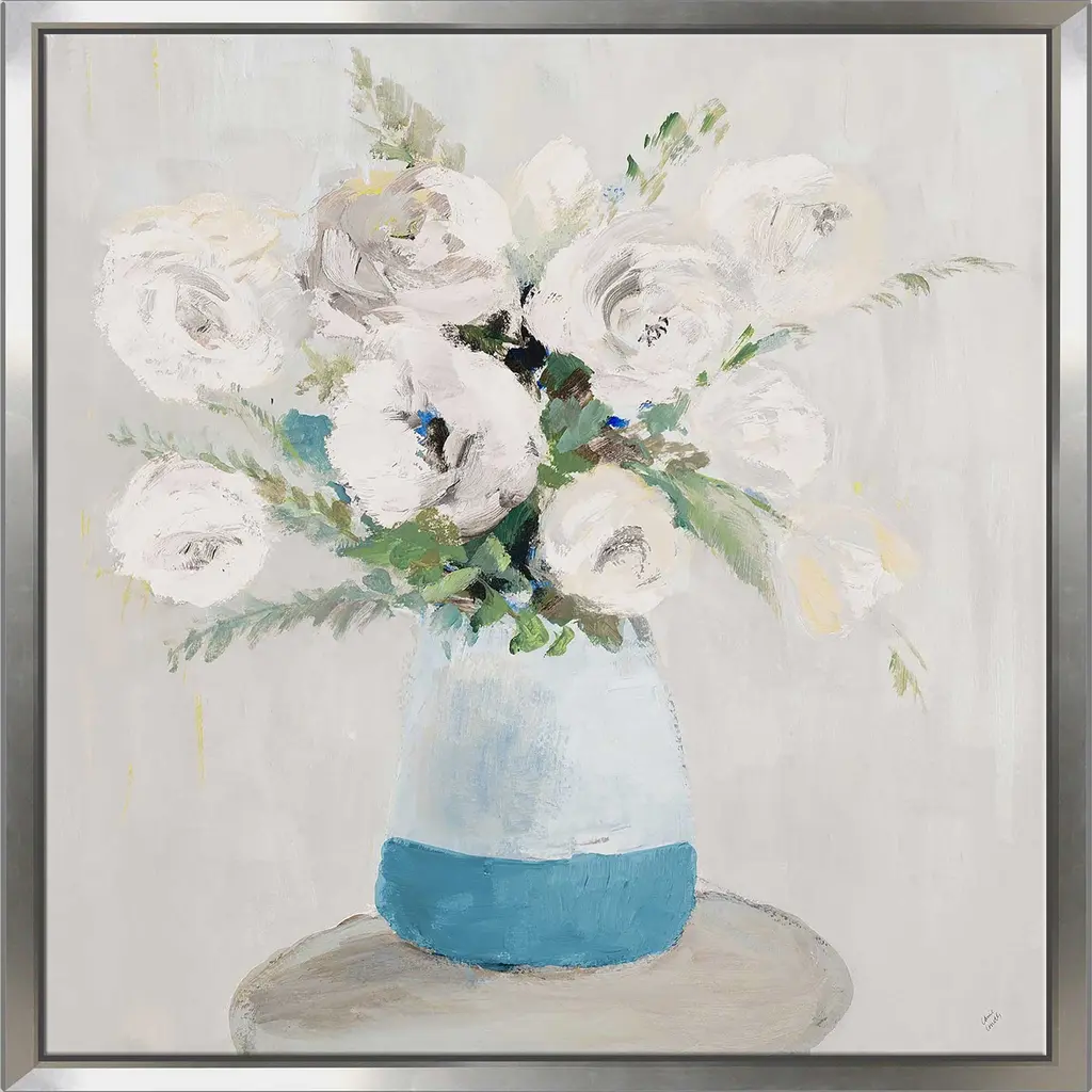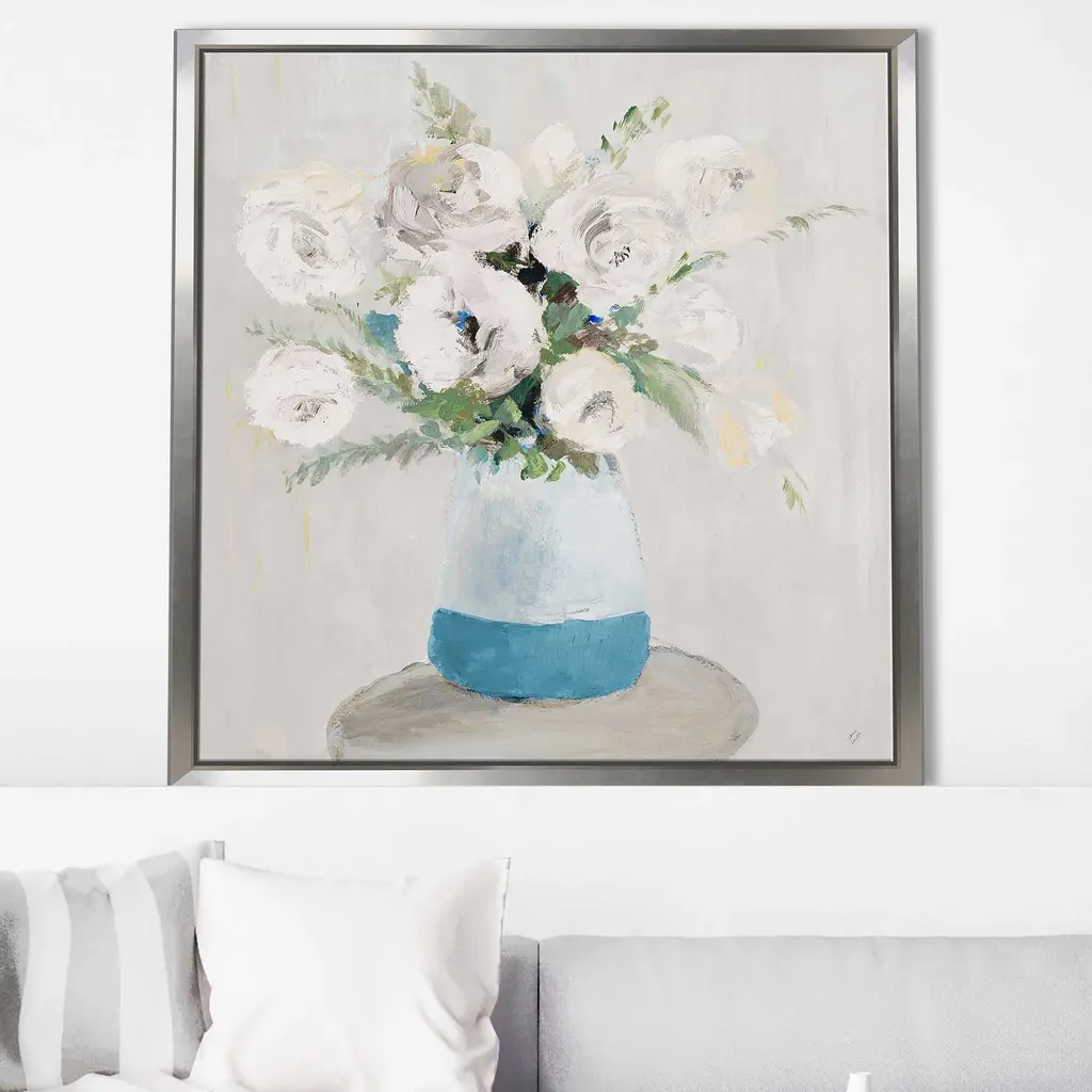 "White Peonies In Tonal Vase" Print On Floating Canvas - 21.5 X 21.5