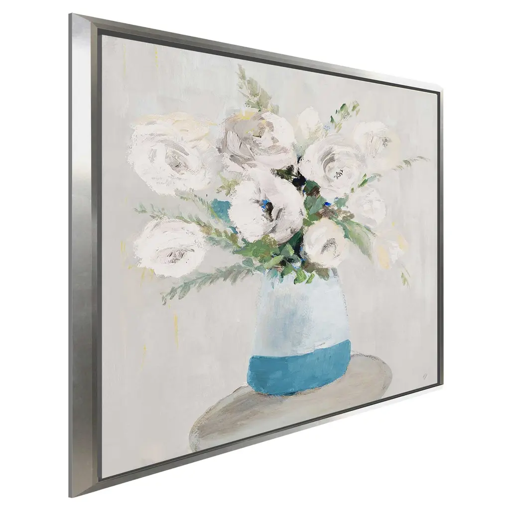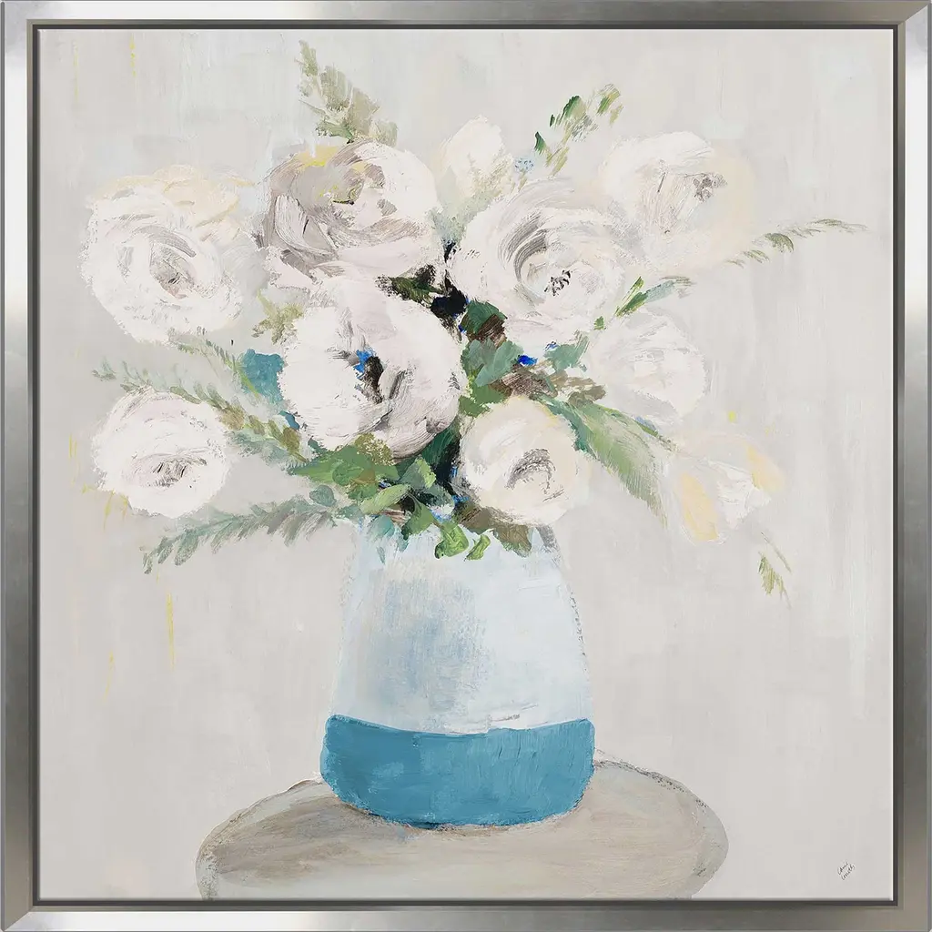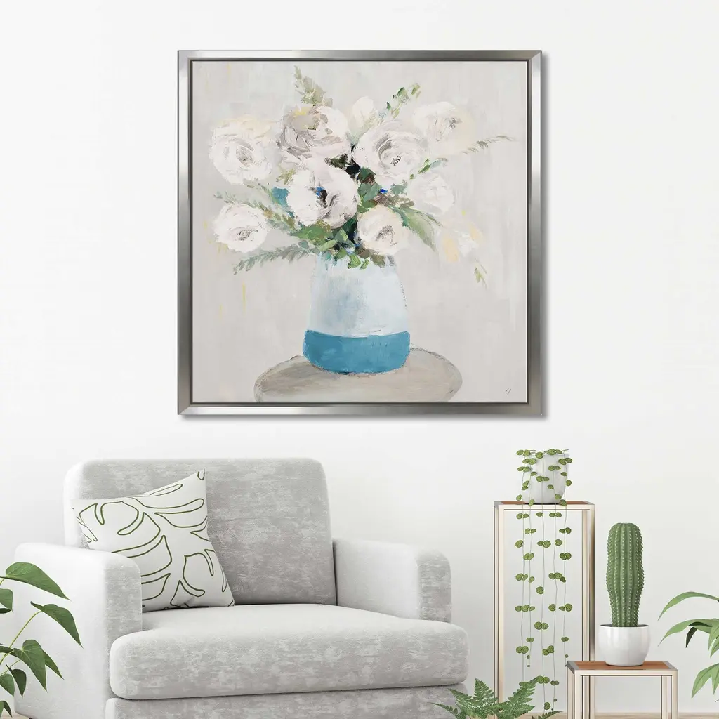 "White Peonies In Tonal Vase" Print On Floating Canvas - 31.5 X 31.5