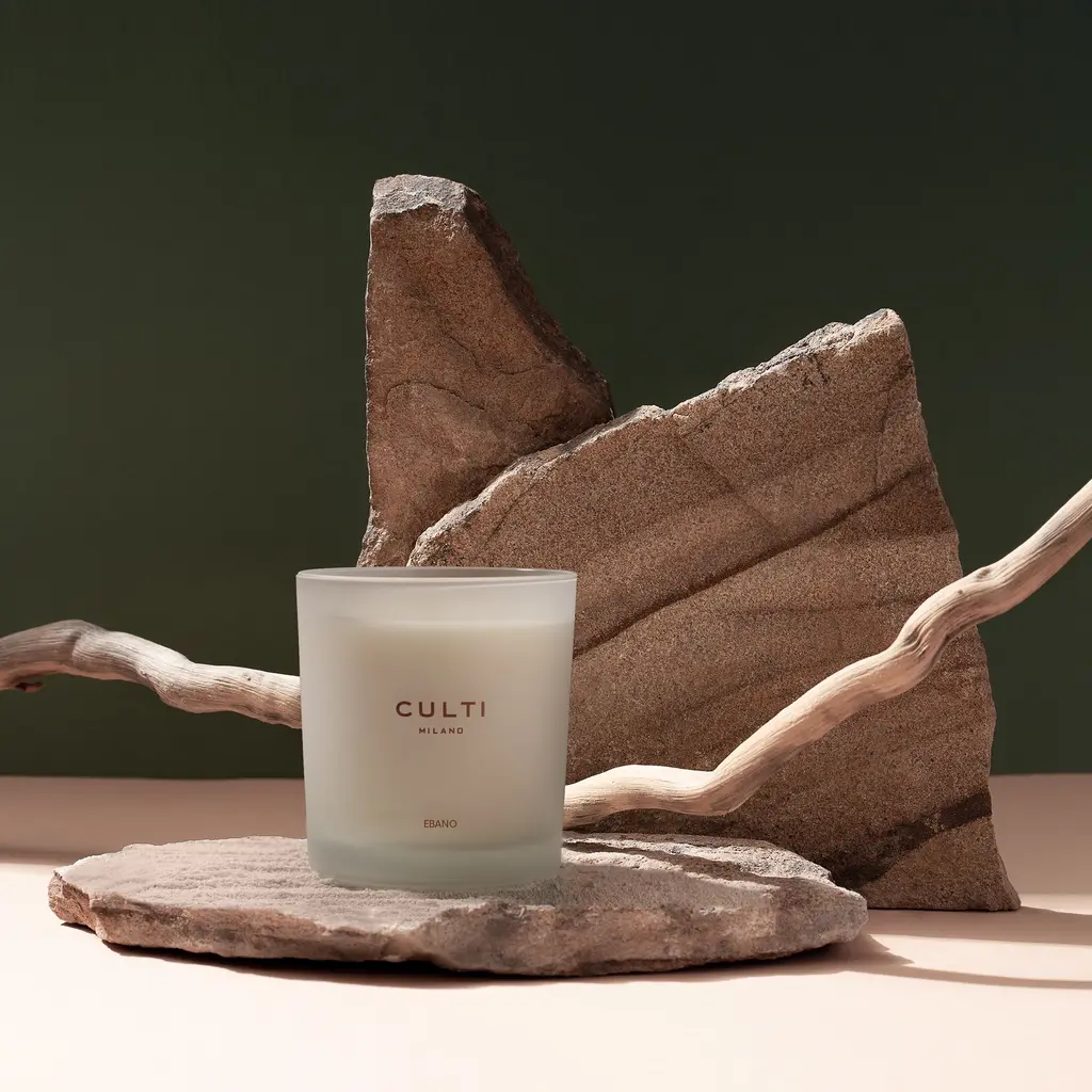 Exclusive design objects characterized by clean lines and elegant simplicity, which enhance every room with soft, dreamlike atmospheres. The fragrances of the CULTI MILANO candles evoke different worlds that can be blended together harmoniously in a dance of scented light. Ebano: A sacred tree in a tropical forest. Its somewhat mysterious wood commands silence, and rewards those who listen with a calm, timeless spirituality.