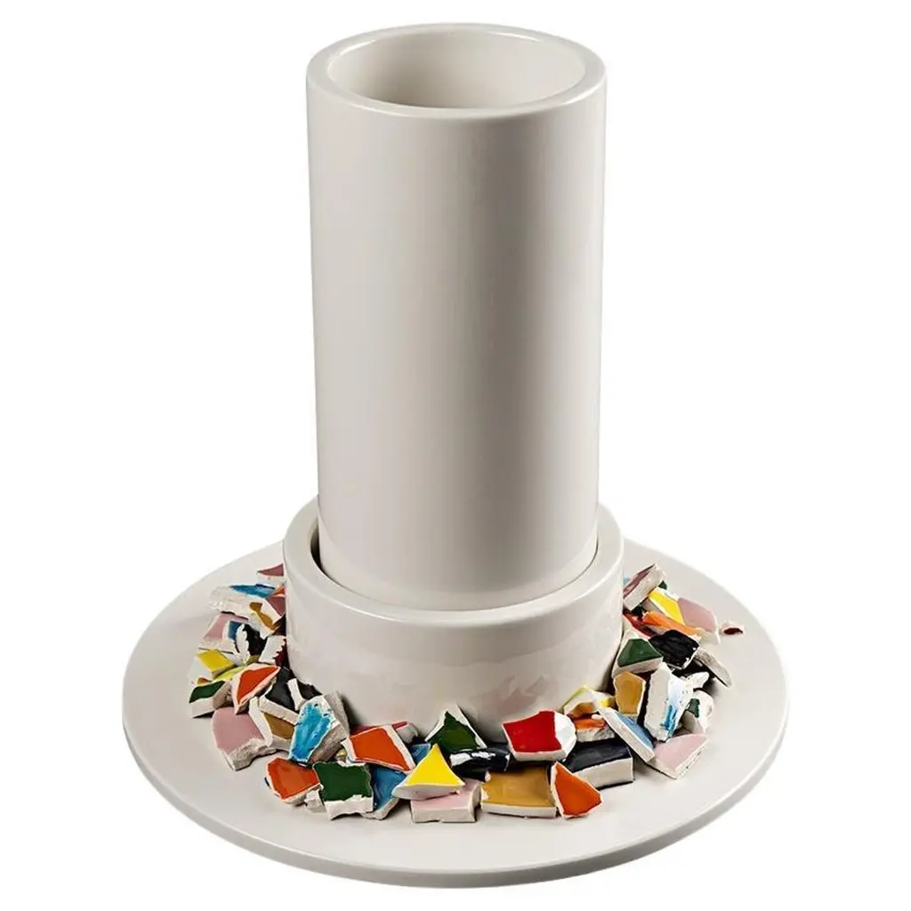 White Vase With Polychrome Fragments By Duccio Maria Gambi