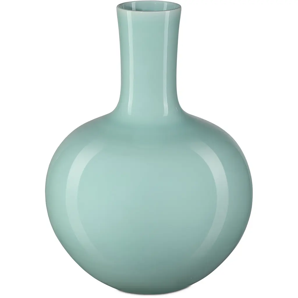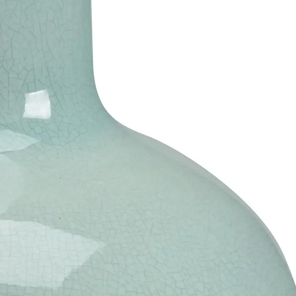 Feature this lovely celadon crackle glazed porcelain vase as a focal point in your home. The round shape with the long neck is ideal for displaying your favorite long stem silk arrangements on a tabletop in a foyer or living area. Vase mouth opening: 3w x 3d