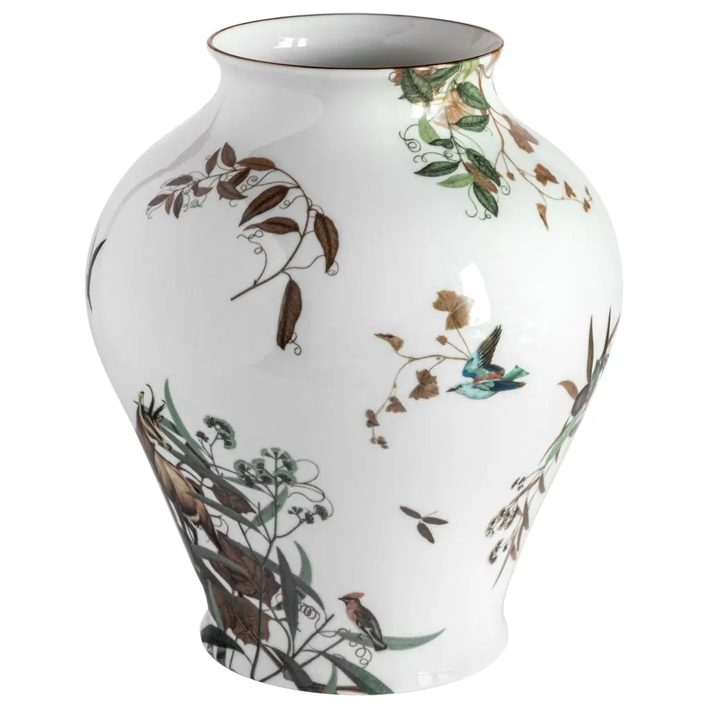 BROOK GLEN BIRDS VASE. GREEN GLAZE ON CERAMIC WITH HAND PAINTED FLORAL AND BIRDS