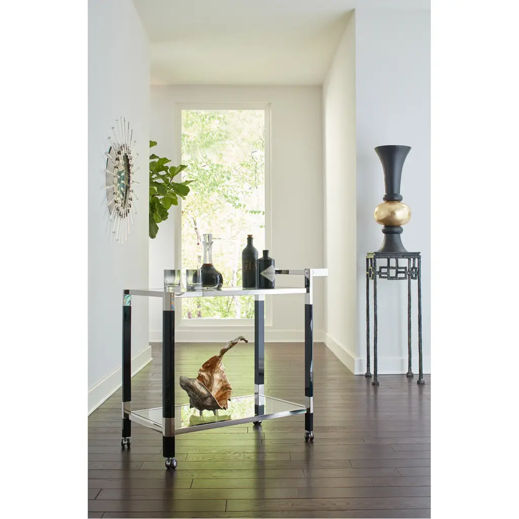 BEU 7 TRUMPET VASE (LG). BLACK AND GOLD OVERSIZED FLOOR VASE.