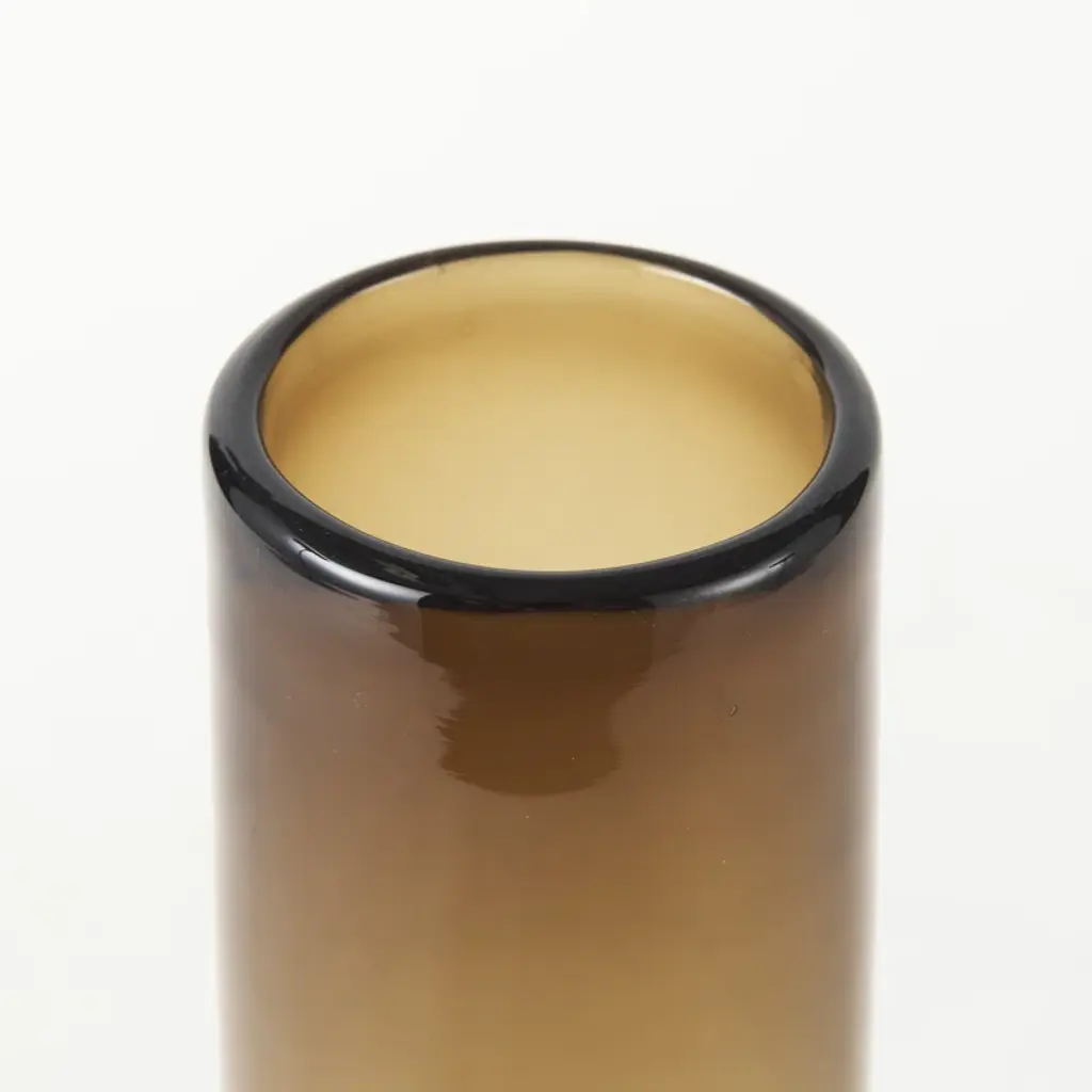 These vases feature a golden brown finish with a unique gradient effect, where the color gradually gets lighter as your eye moves from bottom to top. These vases can be paired with two other matching vases, that offer a different shape with the same unique colorway. Paired separately or together, this vase is an eye-catching decorative piece. Featuring a stunning design that flaunts clean lines and subtle curves, this vase makes for a gorgeous addition to spaces based on the modern/tropical design style.