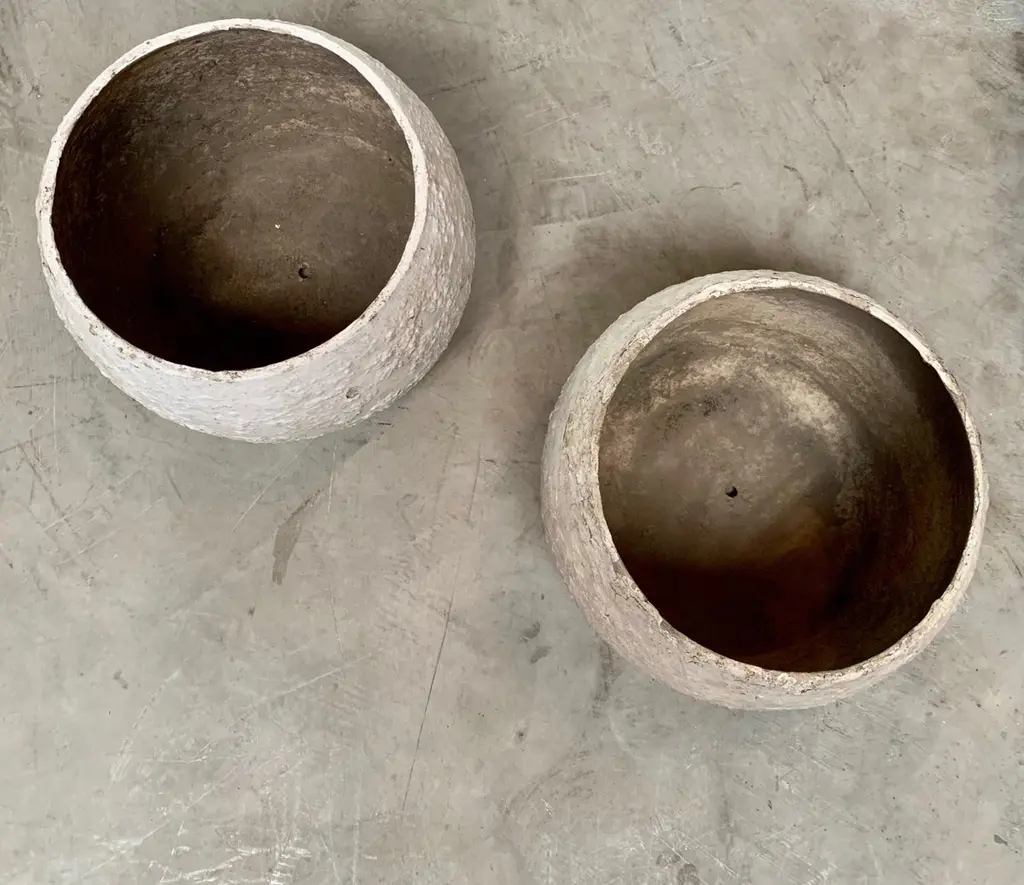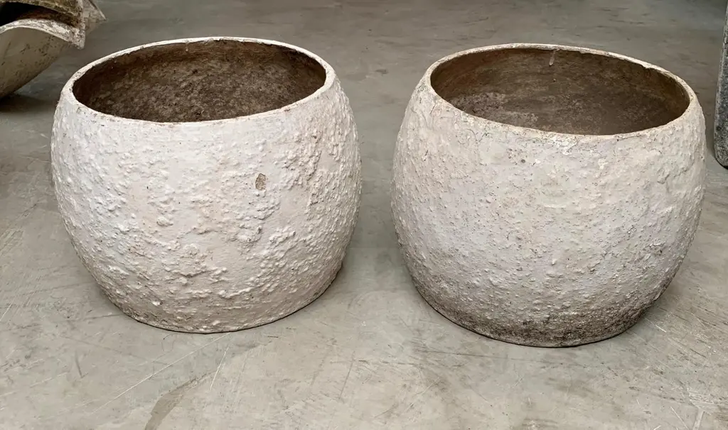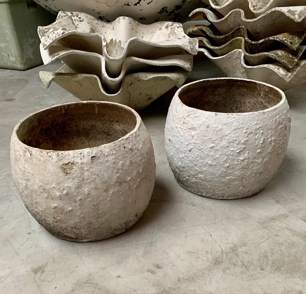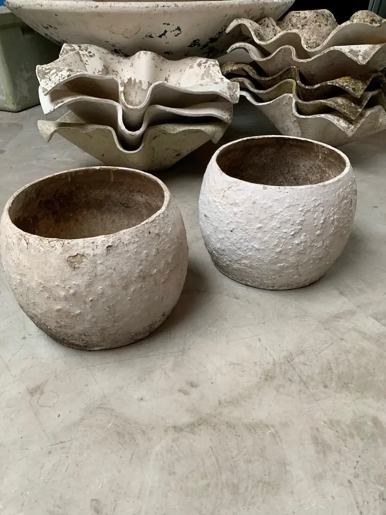 Unique set of concrete sculptures by Swiss architect Willy Guhl. Concrete vases/planters rarely seen. Cool sculptural piece for indoors or outside. Great standalone piece of art. Great vintage condition. Two available. Priced individually.