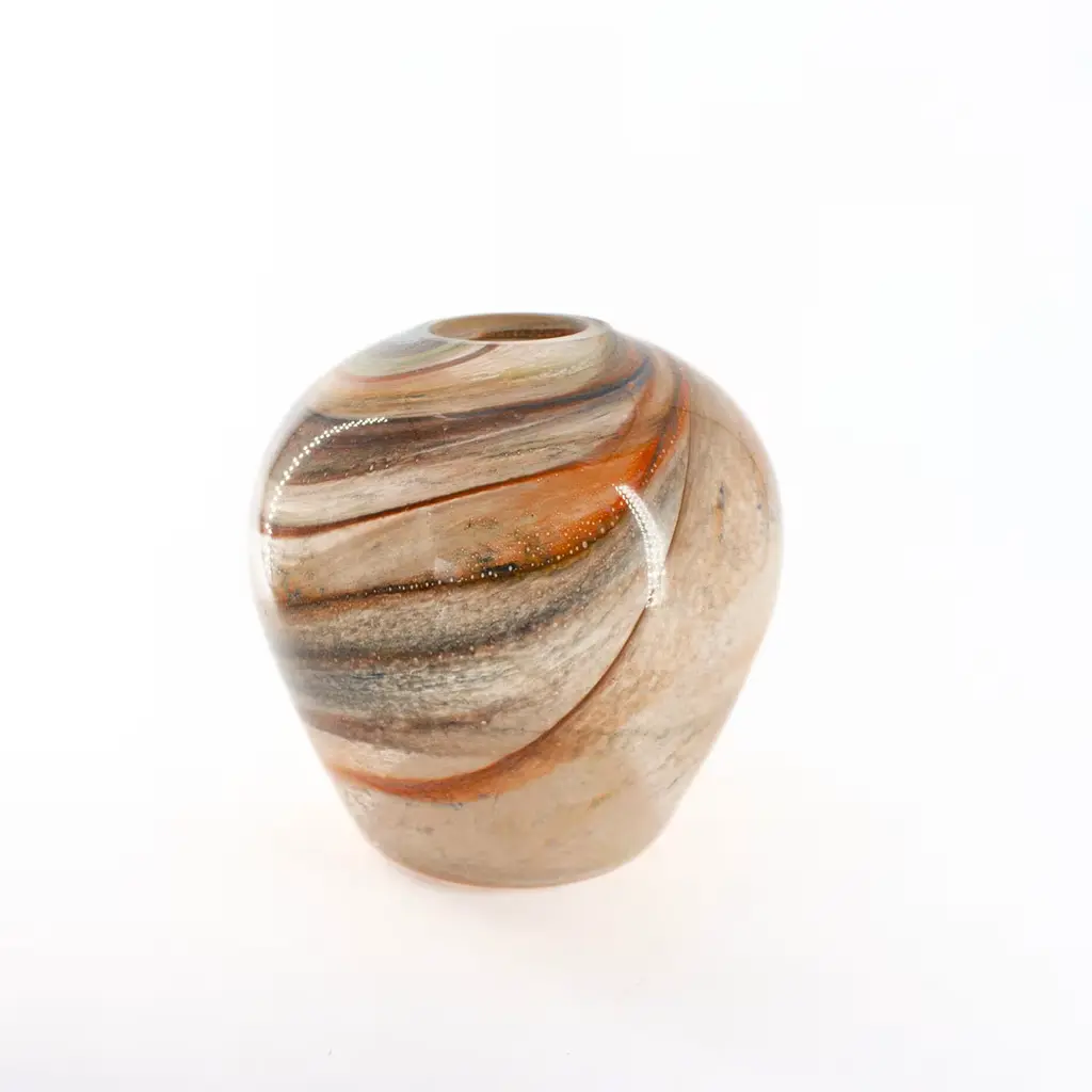 Handcrafted on the island of Murano using traditional glassblowing techniques, this vase is inspired by the soft, flowing patterns of sand and wind. Its natural colors and graceful design add timeless charm to any space, creating a serene and calming atmosphere.
