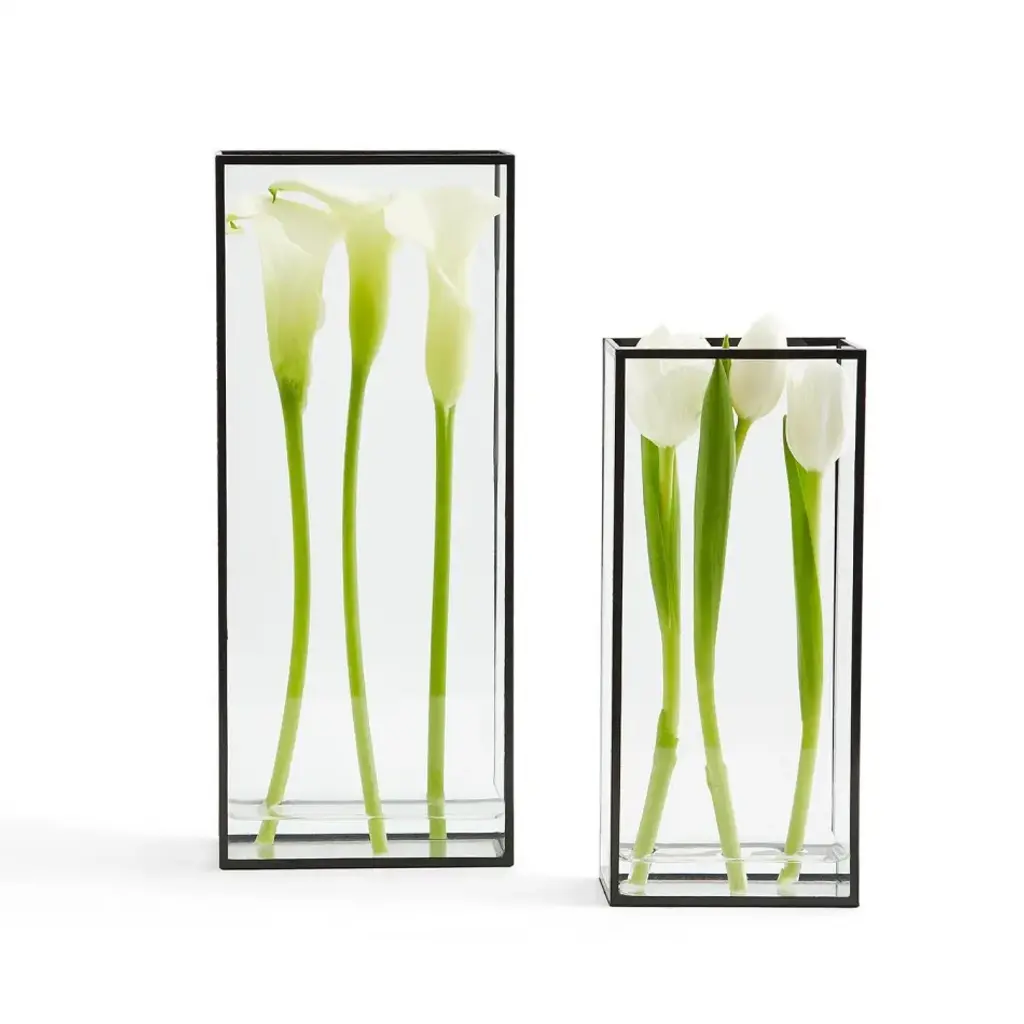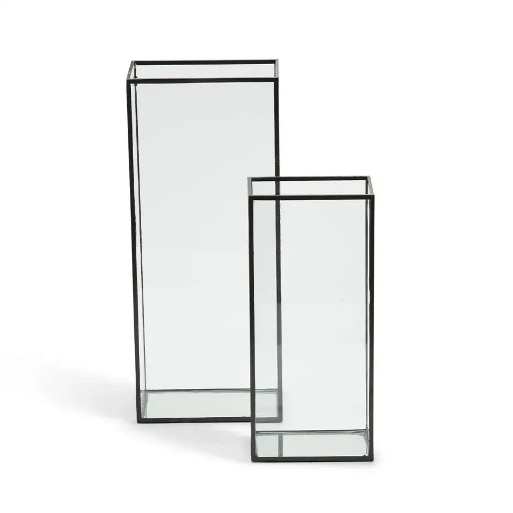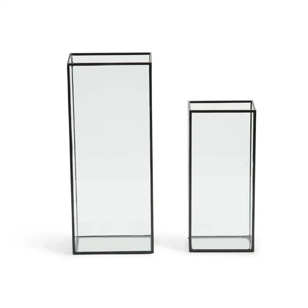 Windows Set Of 2 Square Vases With Black Trim In 2 Sizes Glass/metal