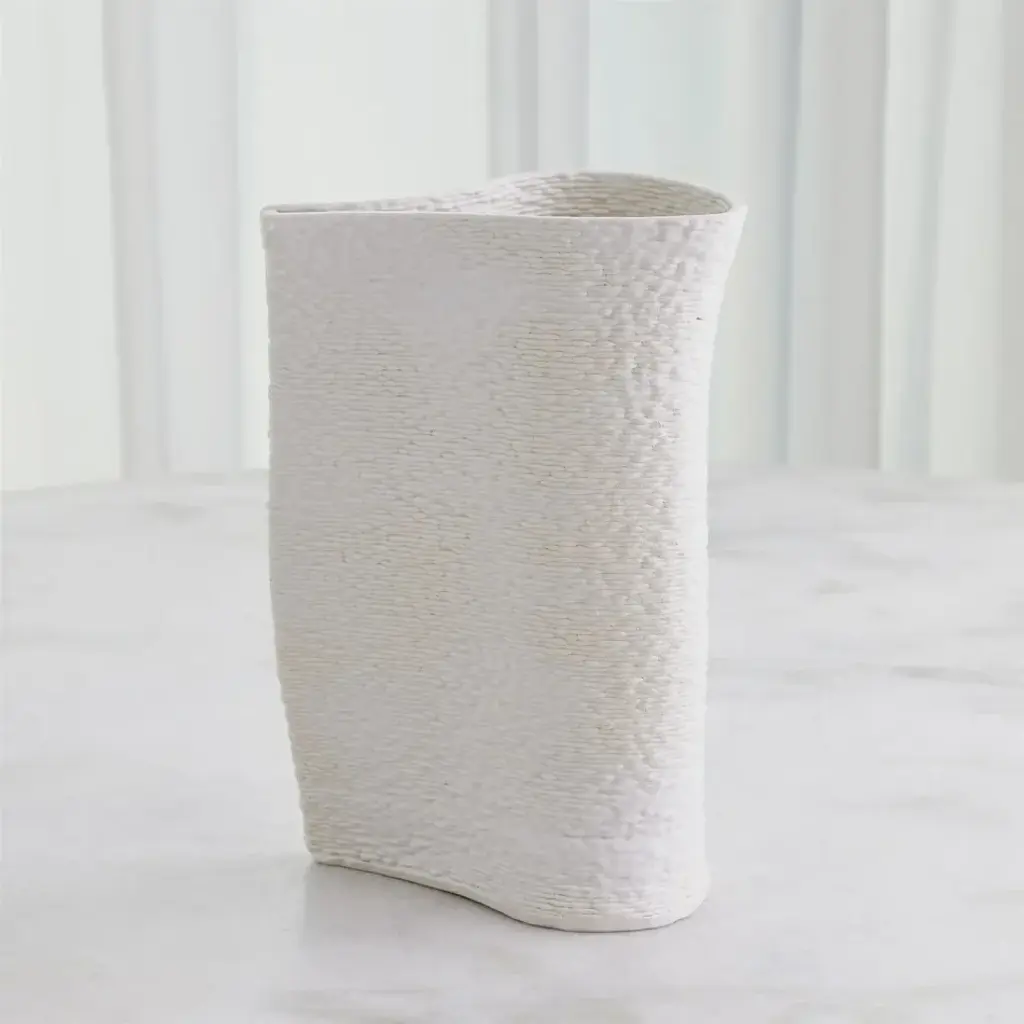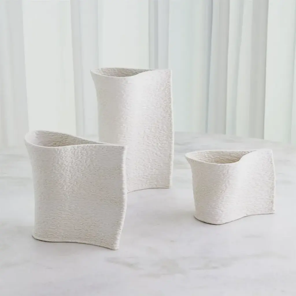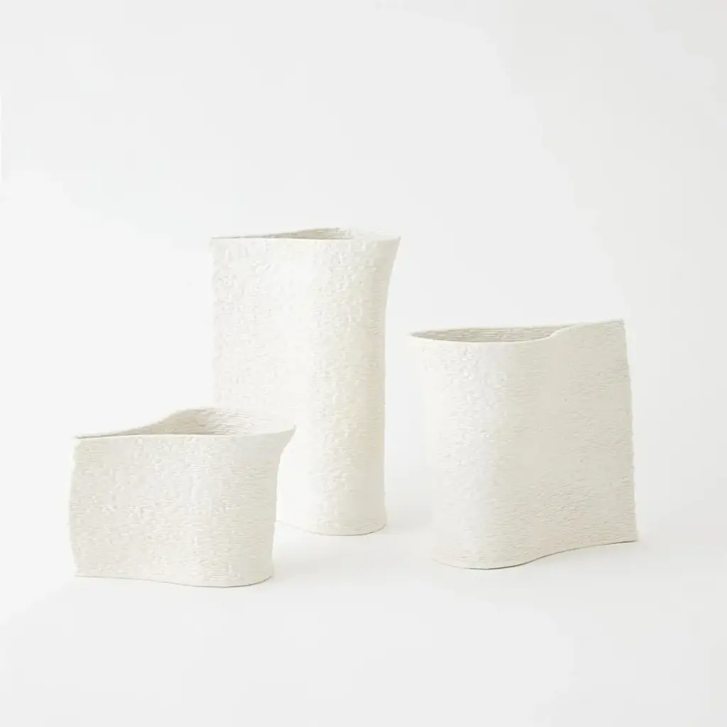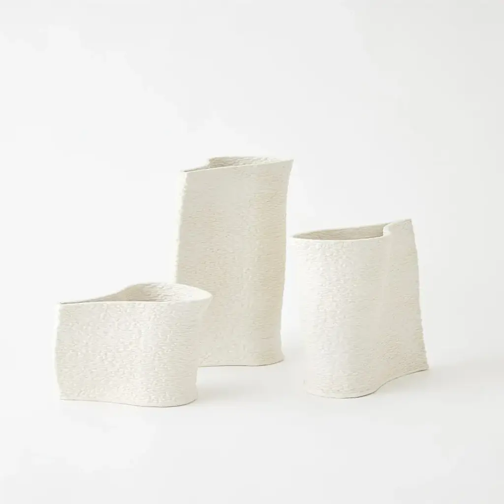 The Windy Printed Vases are a testament to modern craftsmanship, utilizing state-of-the-art 3D ceramic printing technology to layer ceramic for both aesthetics and durability. Crafted in Portugal, they embody the fusion of innovation and artistry. From a fashion forward perspective, Global Views offers accessories, furniture, statement lighting, and an assortment of rugs and mirrors to add beauty and joy to your home.