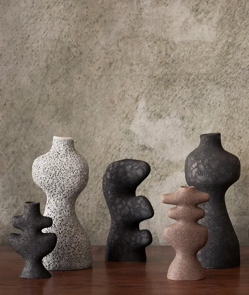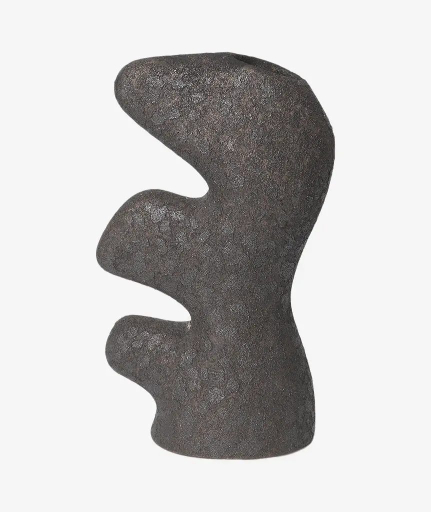 The Yara Vases combine earthy tones and rough textures to form an organic expression. Crafted from ceramic, each piece is coated with a reactive glaze that ensures a unique and varied appearance. Inspired by the stone and marble figurines that were made in the Cycladic era, the vases are both abstract in expression and simple in form. They can be showcased individually or combined with other pieces from the Yara collection, creating a harmonious yet contrasting display. This product features a reactive glaze that creates a unique appearance. Variations may occur.