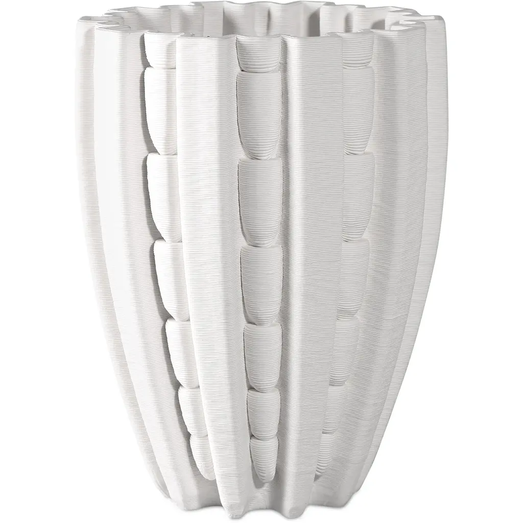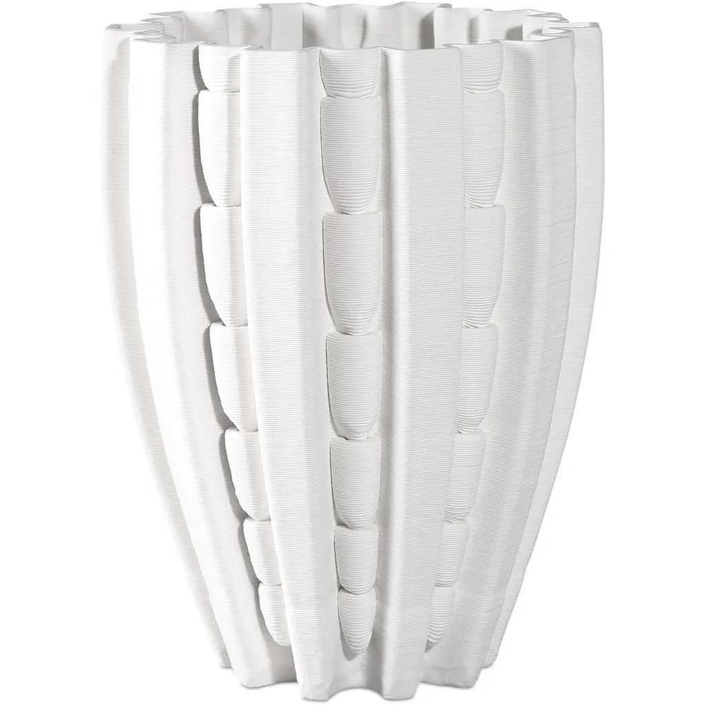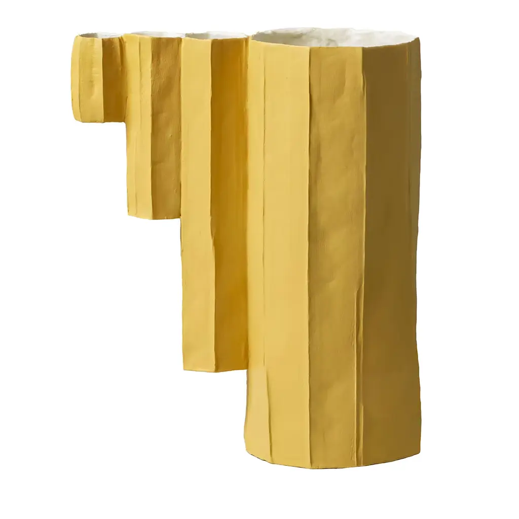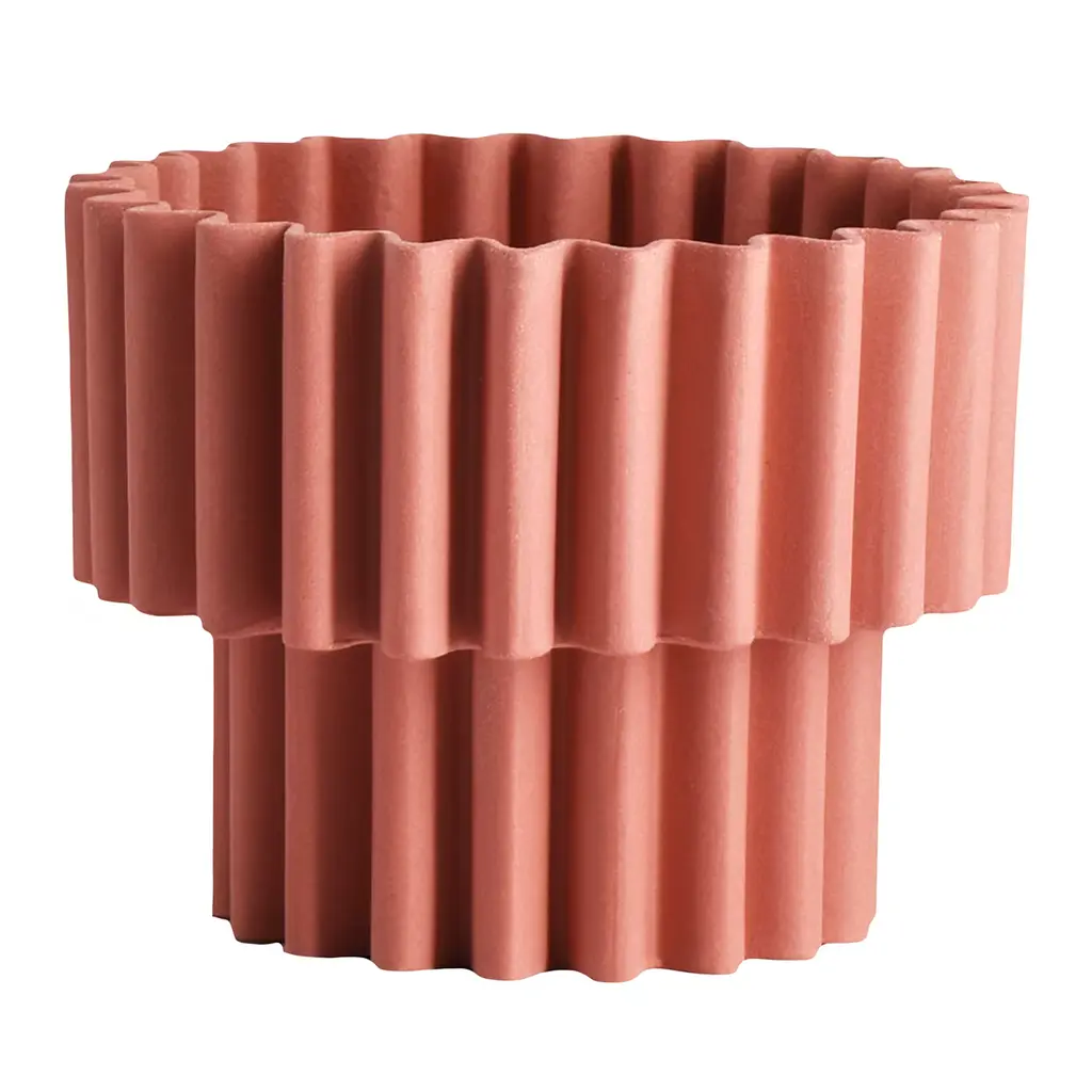 Printed with 3D technology, this splendid vase fashioned of red clay is entirely glazed by hand and decorated with white details. The versatile and innovative tubular silhouette allows for creating free-form compositions with plants and flowers. It features a functional water storage receptacle activated by the porosity of the material.