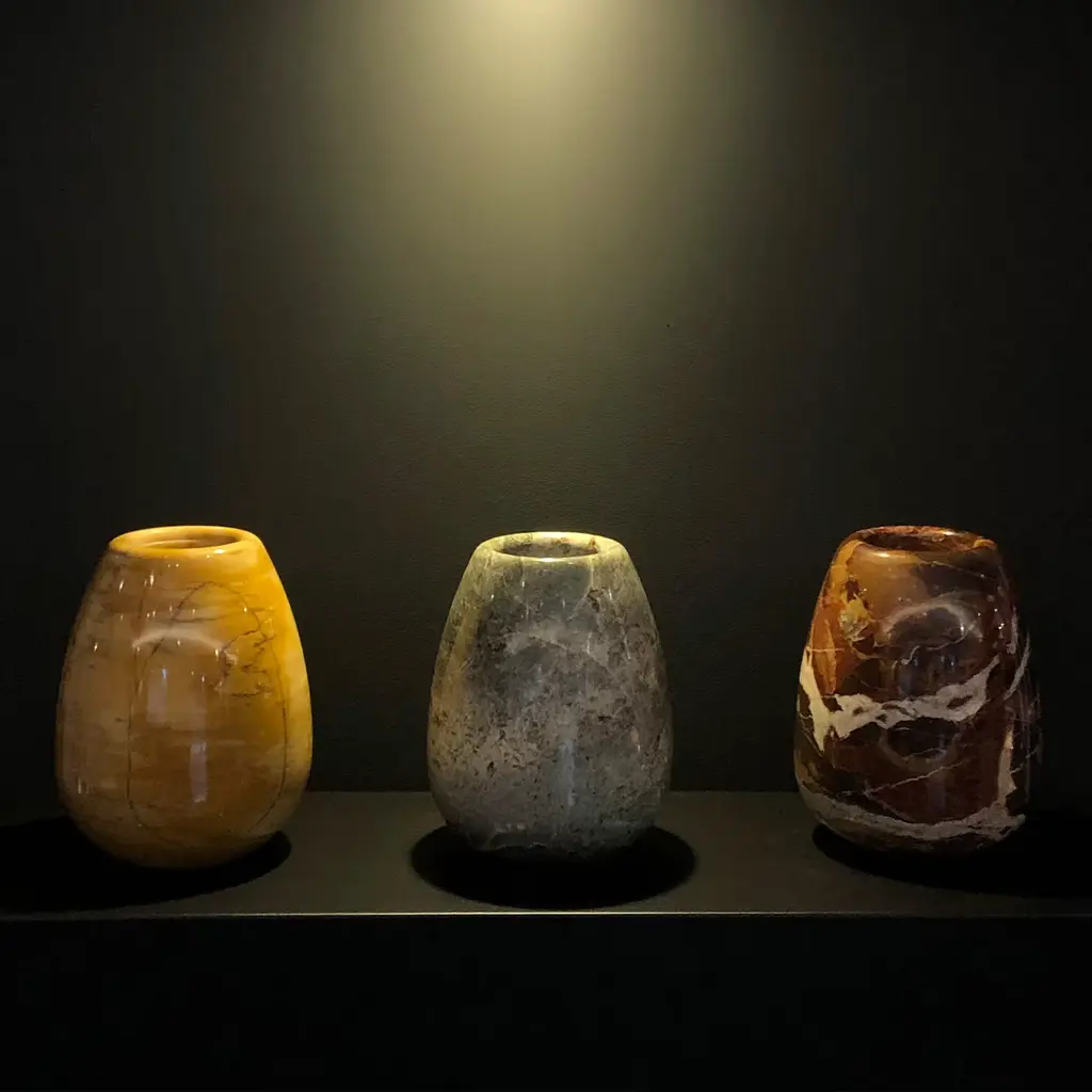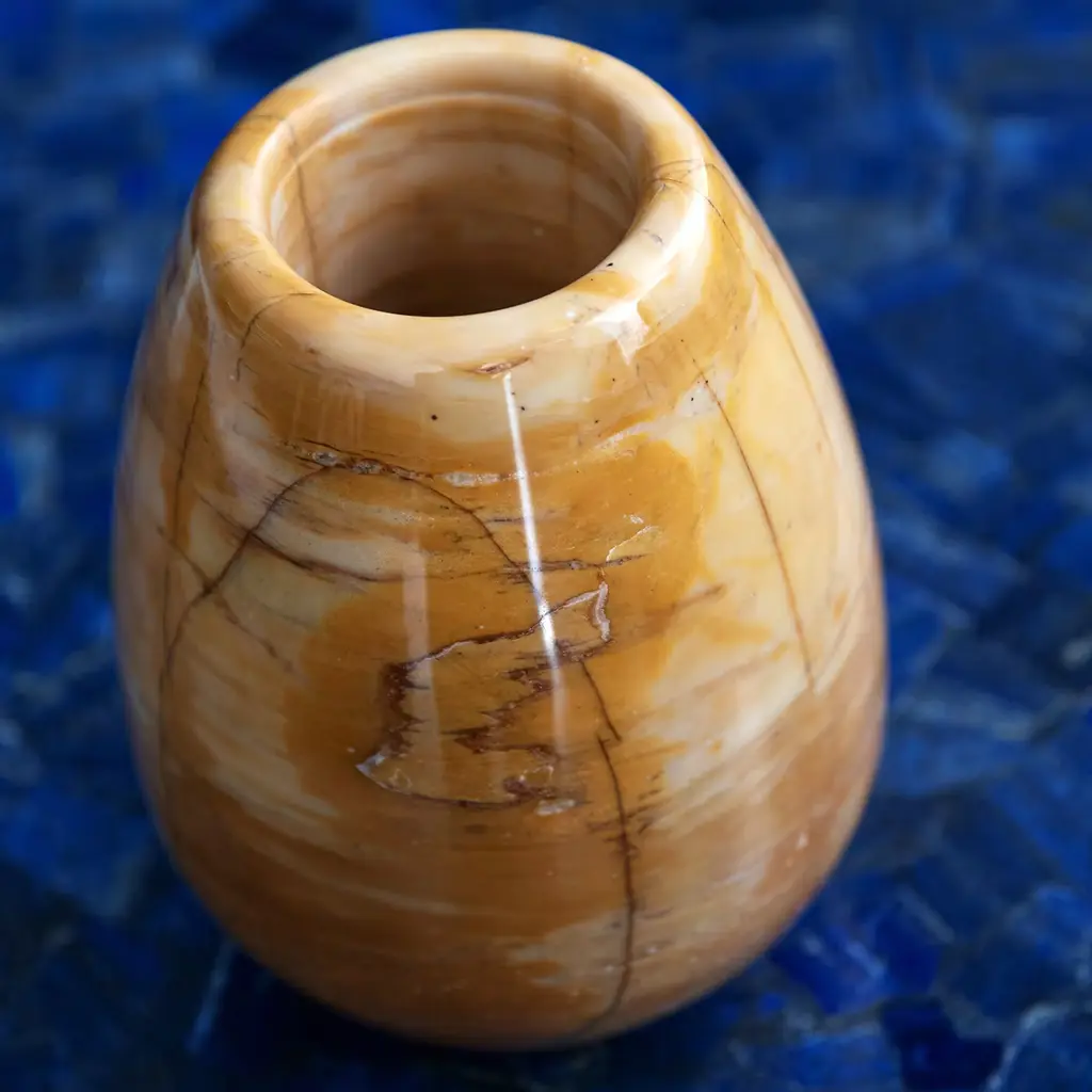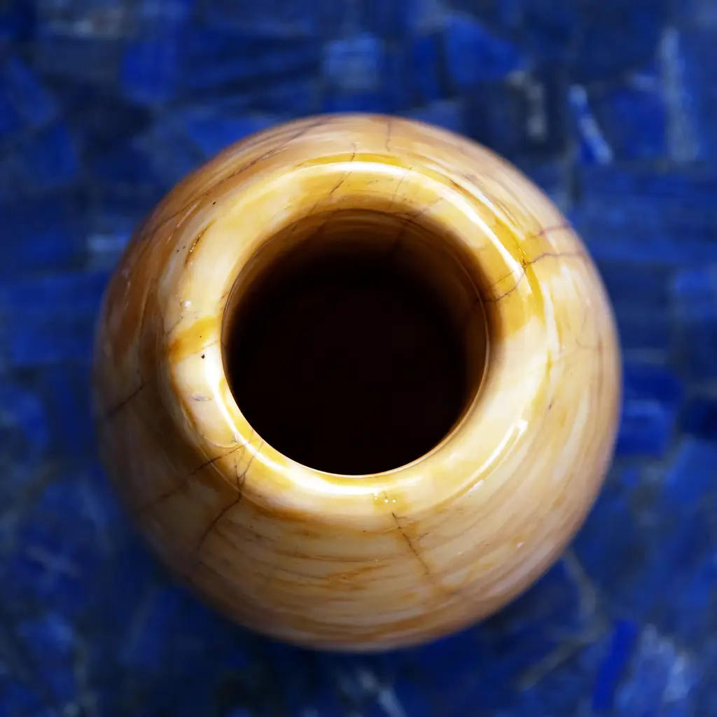Part of an exclusive series of numbered and certified vases first designed by architect Franco Albini in 1940, this exceptional artwork is handcrafted from a single piece of precious Yellow Siena marble hailing from Italy. Perfect for both indoor and outdoor refined settings, it is a stunning and singular artwork that will shine in any home. Please ask the Concierge for customization options.