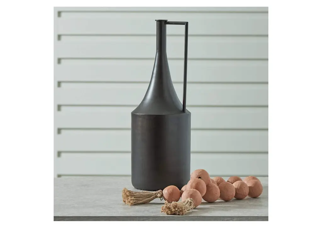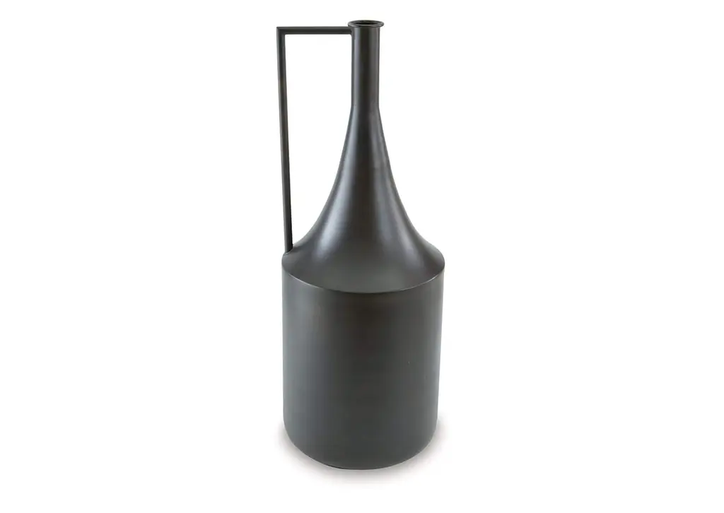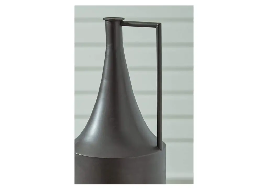 Chic on a tabletop or shelf, the Zainforth vase is an eye-catching accent. Its angular handle provides a sharp, stunning geometric contrast to the curved neck. Finished in a distressed brown hue, this piece plays well in spaces ranging from casual to contemporary. Weight 6.000 lbs. (2.7kgs.)