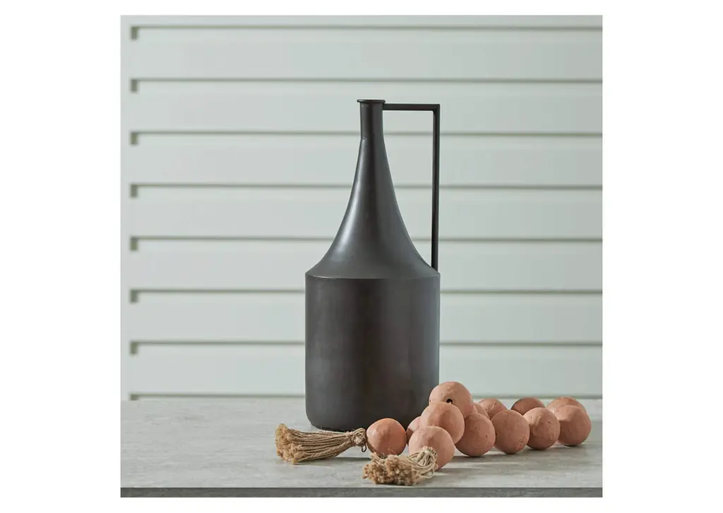 Chic on a tabletop or shelf, the Zainforth vase is an eye-catching accent. Its angular handle provides a sharp, stunning geometric contrast to the curved neck. Finished in a distressed brown hue, this piece plays well in spaces ranging from casual to contemporary. Weight 5.000 lbs. (2.25kgs.)