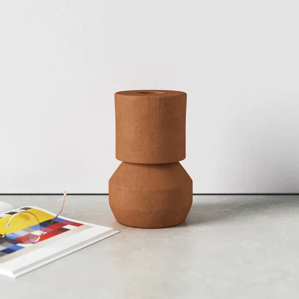 Handcrafted from terracotta, this table vase showcases a sculptural, chunky silhouette + earthy orange-brown tone. Pair it with dried pampas grass for an understated boho look, or add bright blooms to play up contrast. It’s watertight, so cut flowers get the hydration they need to stay fresh.