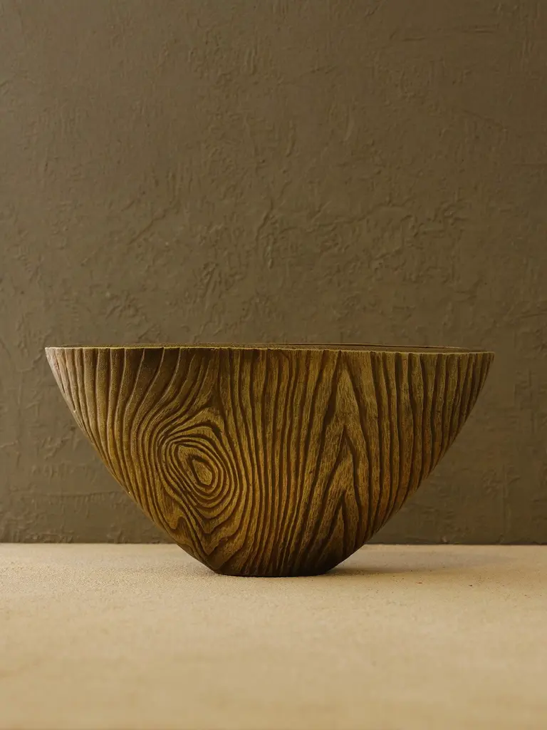 Zen Bowl Vase – Sculptural Wood-Texture Decorative Centerpiece