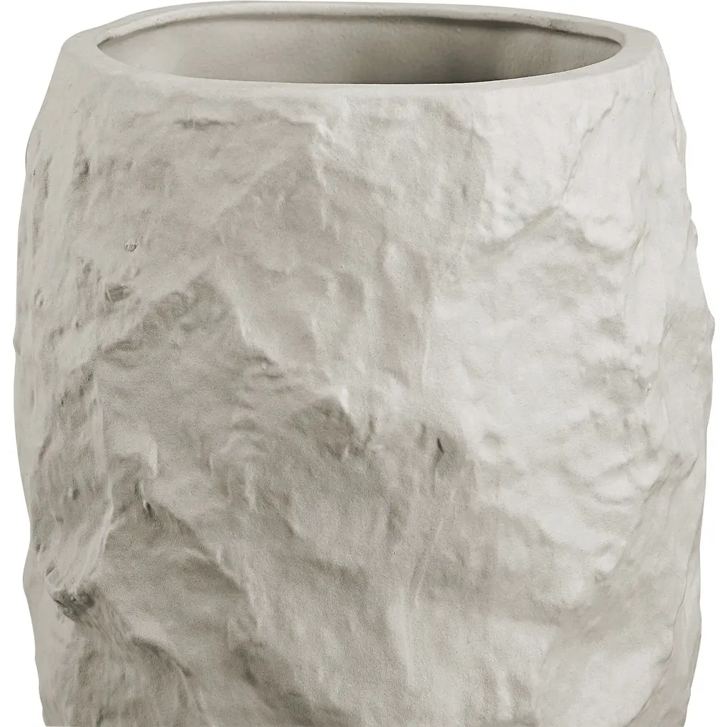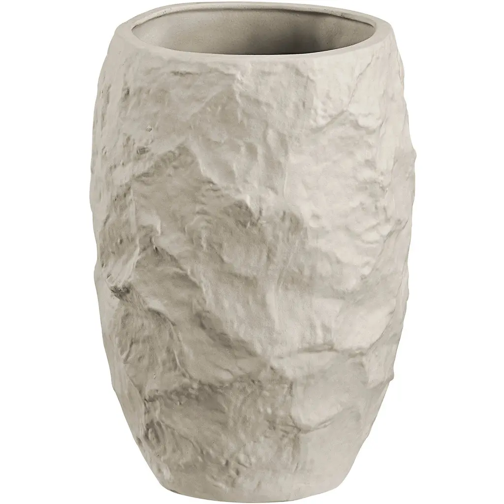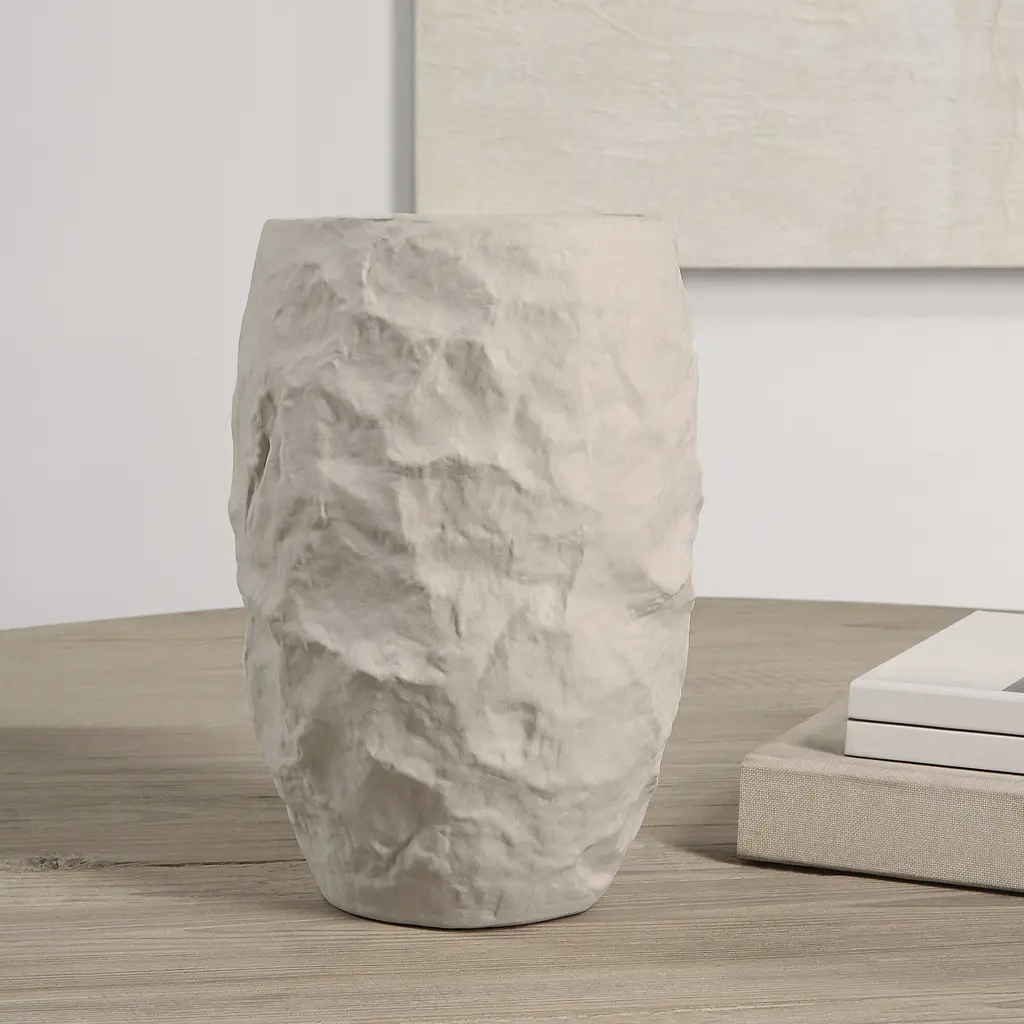 The intricate beauty of a sand-shell texture takes the spotlight in this vase design. Equally impactful in a solitary setup as it is with dried blooms, this accessory can set on a living room end table, coffee table or shelf. The chipped details of this porcelain ceramic piece lend a rich, historical quality to an artisanal interior.
