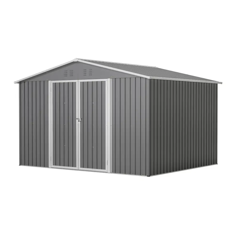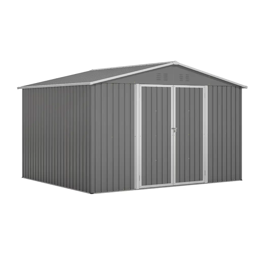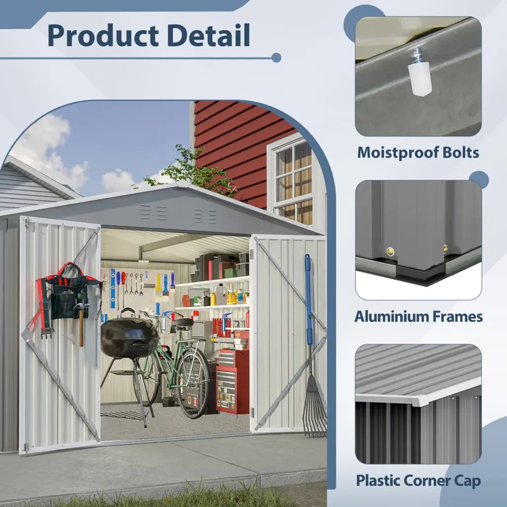 10x8 Ft Outdoor Storage Shed, All Weather Metal Sheds Withlockable Doors, Tool Shed For Garden, Patio, Backyard, Lawn, Grey