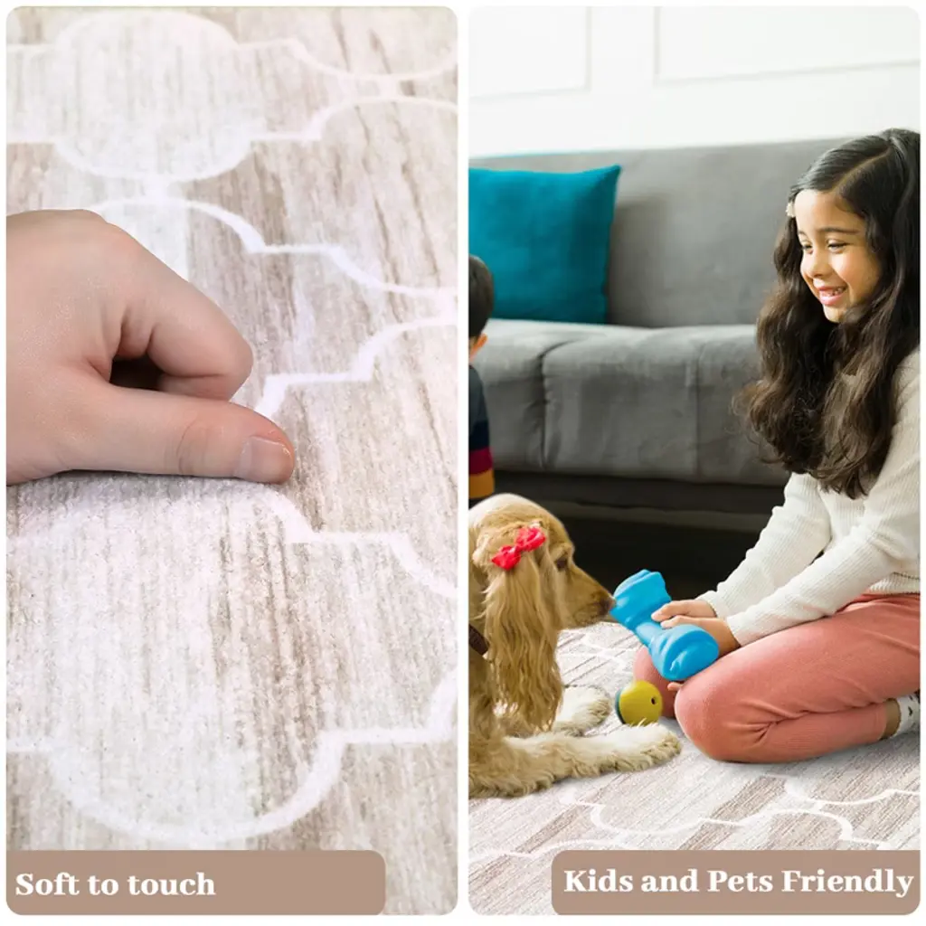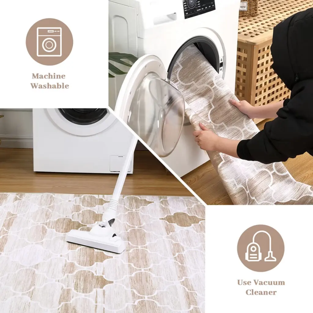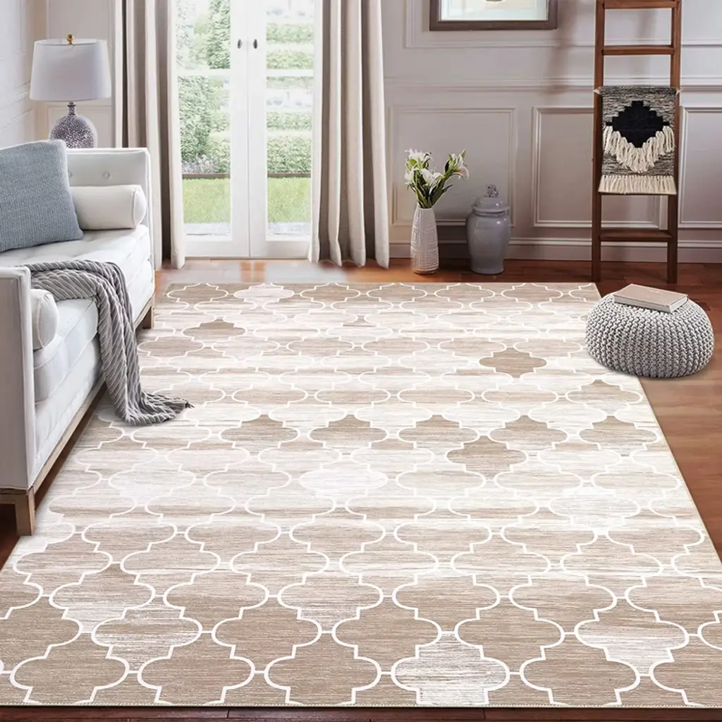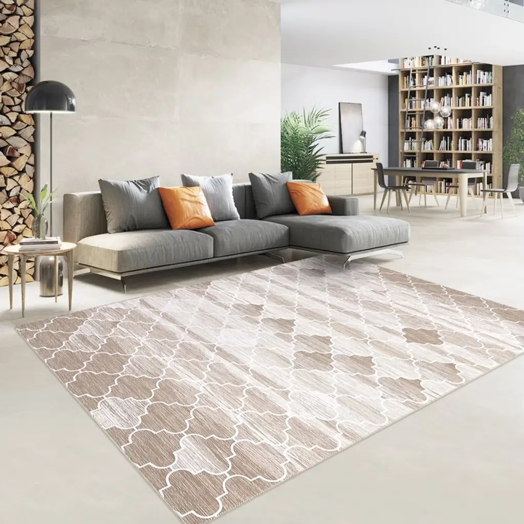 1150gsm 100% Polyester Chenille Washable Foldable Printed Carpet Boho Style Coffee Tone 5X7ft