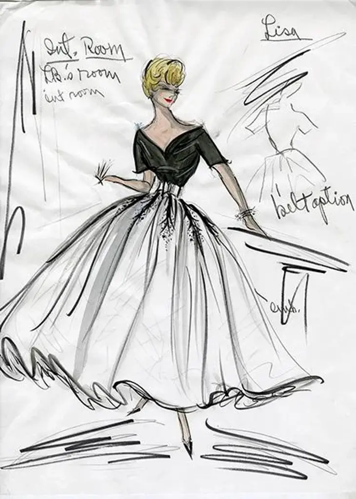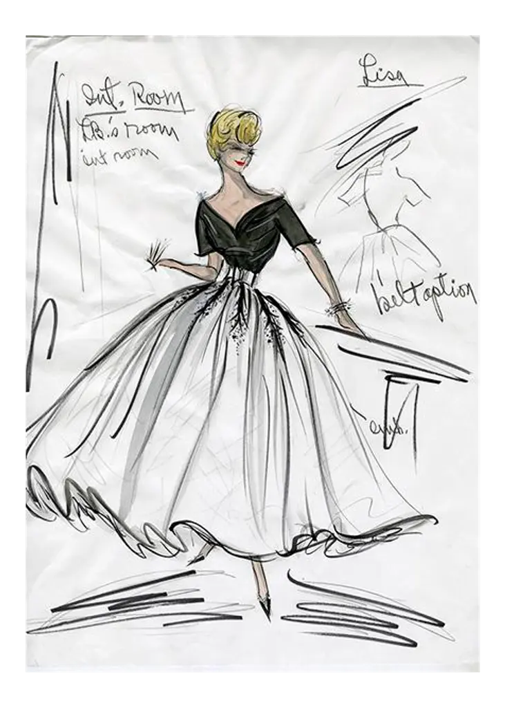 CHAIRISH EXCLUSIVE: AVAILABLE AT CHAIRISH ONLY. Rare reproduction of original costume sketch by Edith Head for actress Grace Kelly for the Alfred Hitchcock film "Rear Window," 1954. 11x14 Print only (no frame). LIMITED EDITION of 35. Edith Head was a legendary costume designer or “magician” as she liked to call herself. To this day, she holds the record for most Academy Awards (8) and most nominations (35) in the costume design category. In honor of her accomplishments, mptv Décor is proud to offer this gorgeous and rare print! Material: Archival pigment print on acid free art paper to give it that sketch pad look. Each size limited to an edition of 35.