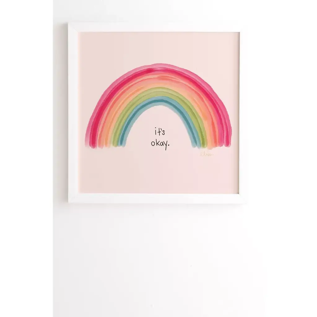 12" X 12" Elisa Bell 'it's Ok' Framed Wall Art White/pink - Deny Designs: Sustainable Bamboo Frame, Modern Decor
