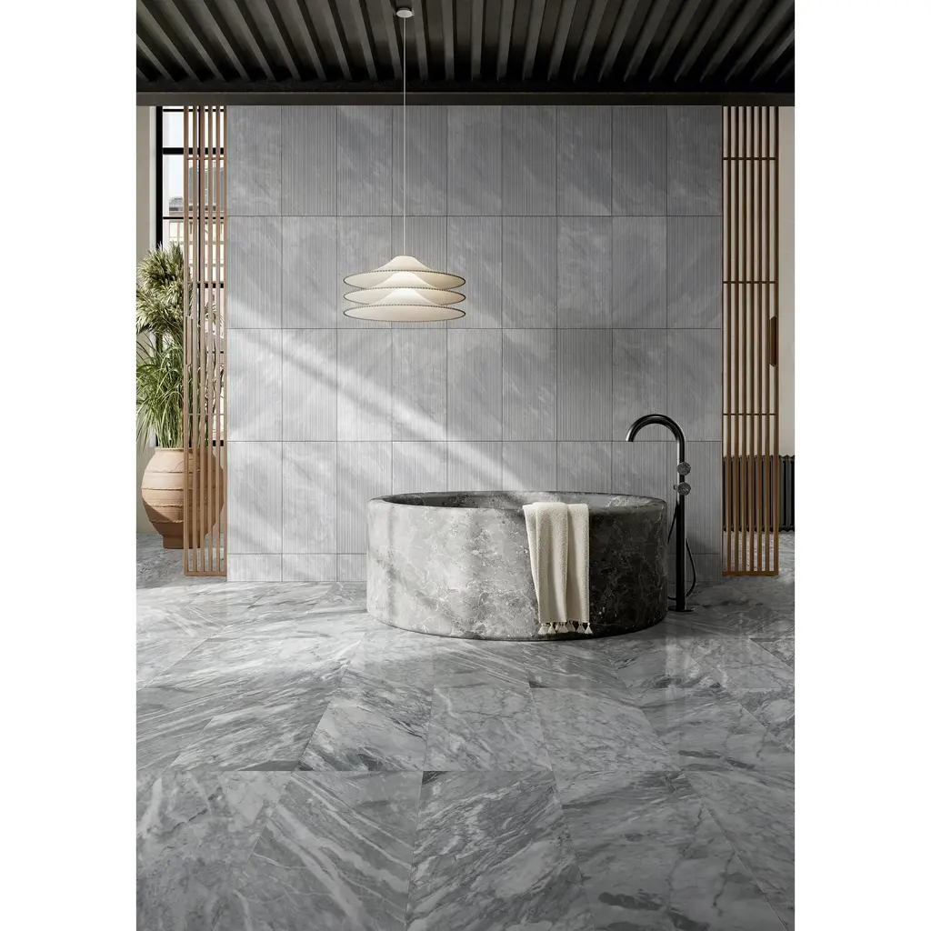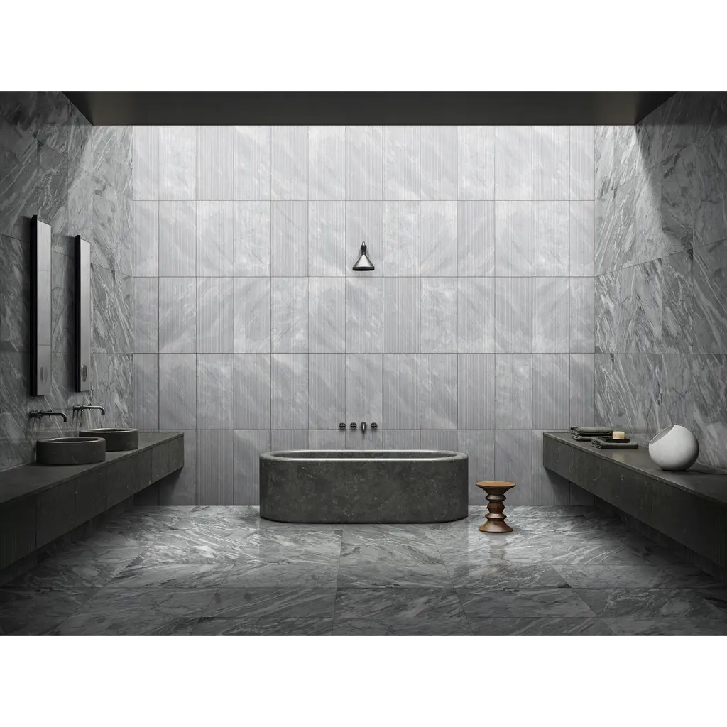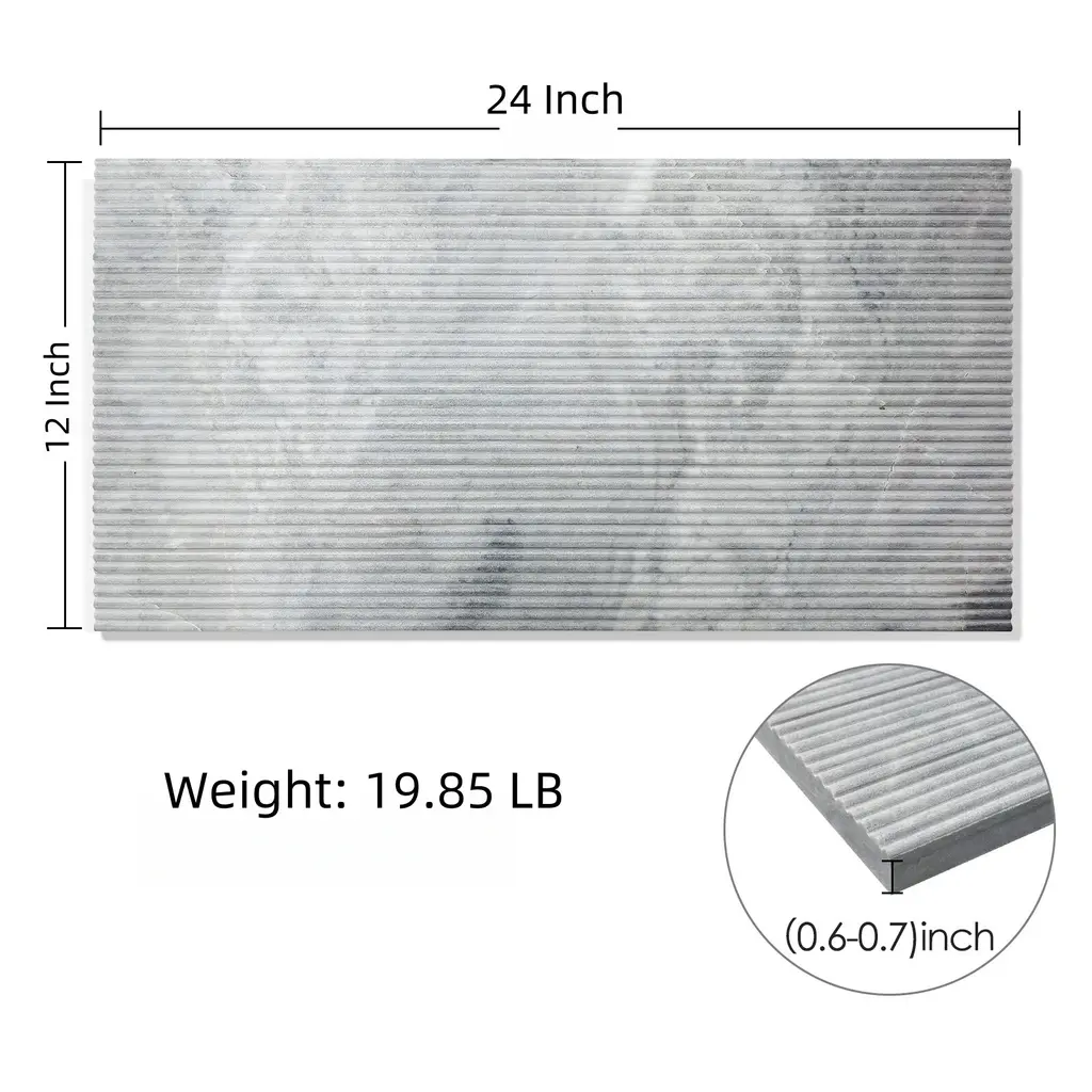 12"×24" Natural 3D Fluted Marble Tile With Ol Textured Finished For Wall, 1 Box 4 Pcs - Grey