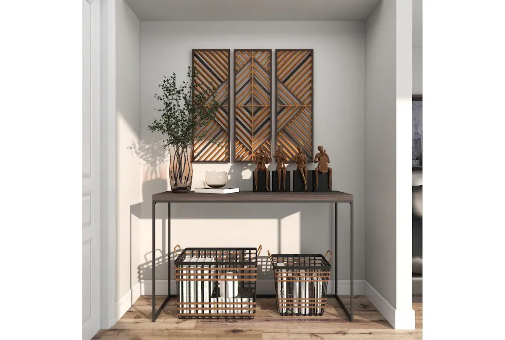 Create an excellent focal point on your walls paired with some cute accent tables, and level up your home with this amazing wall decor. Showcase your personality and turn your walls into an art gallery with this captivating wall décor. Mesmerizing wall art is ideal for industrial, eclectic, and farmhouse-inspired living spaces in a natural setting background. This item ships in 1 carton. Can be hung vertically using the D-rings on the back; nails and screws not included. Suitable for indoor use only. This item ships fully assembled in one piece. This brown colored wall sculptures comes as a set of 3. Contemporary style.